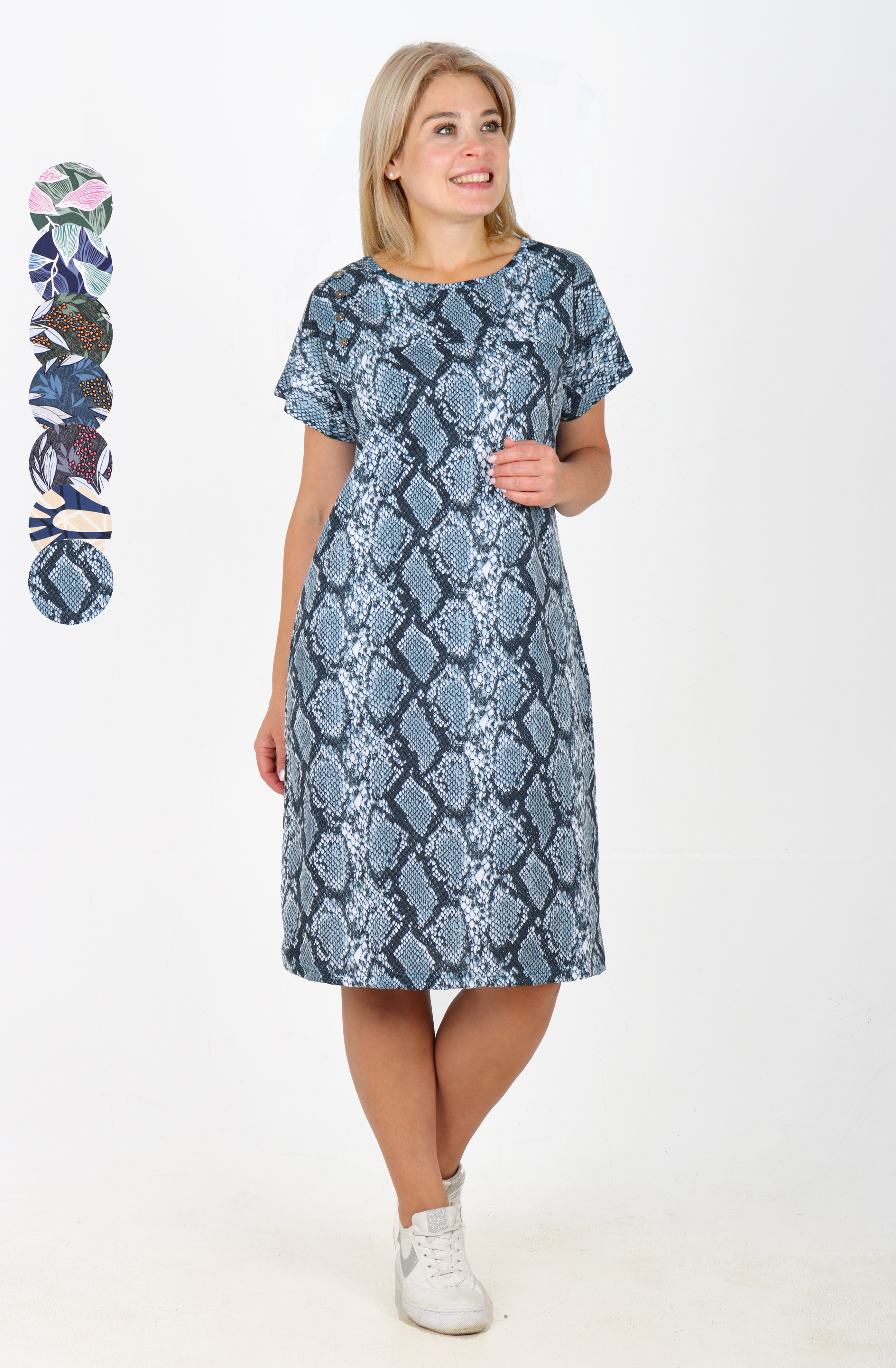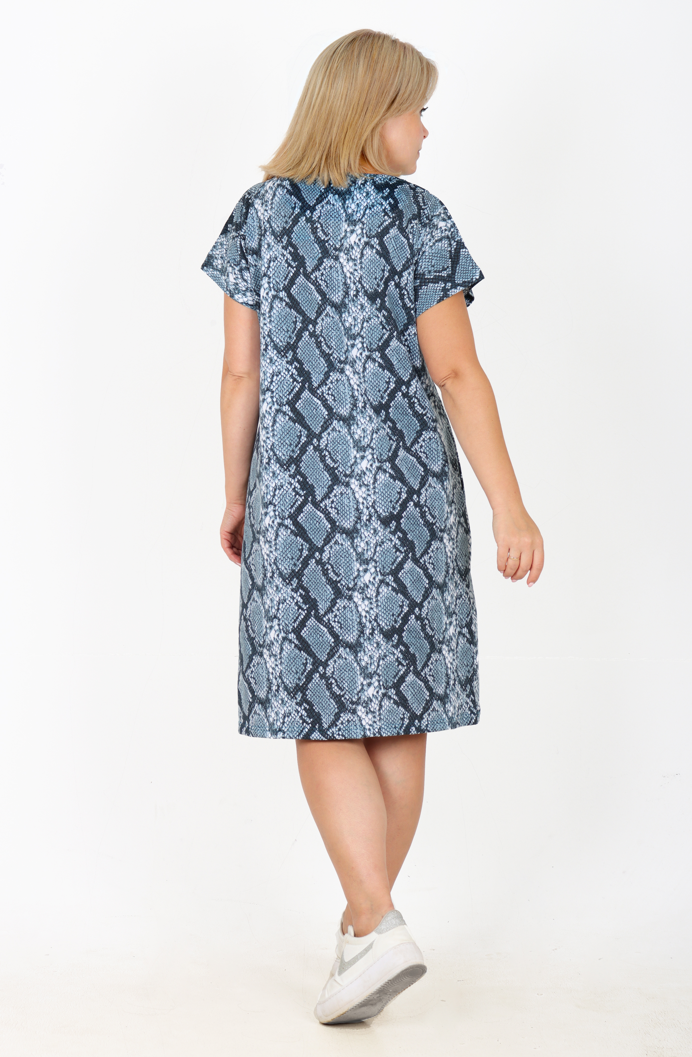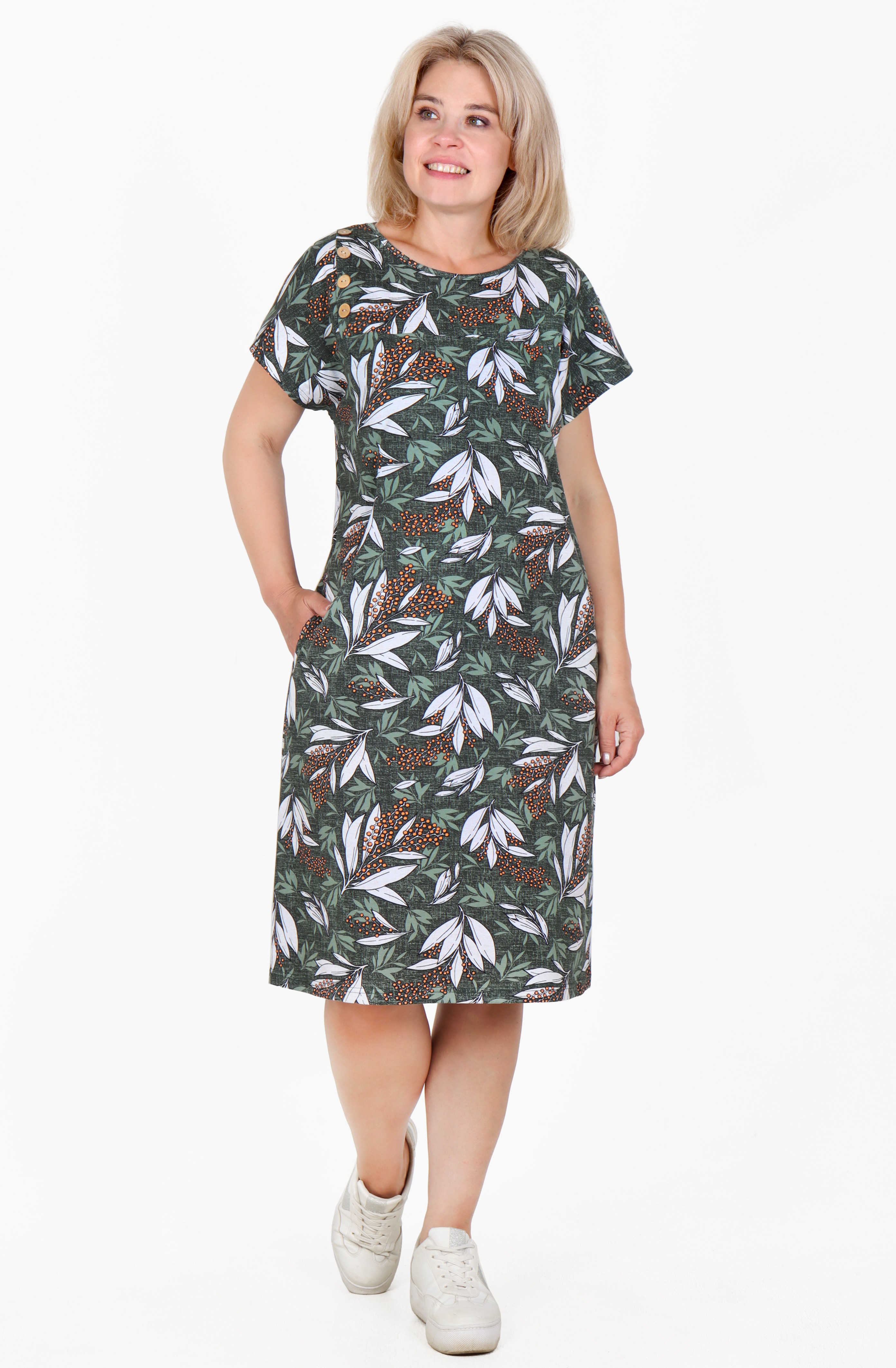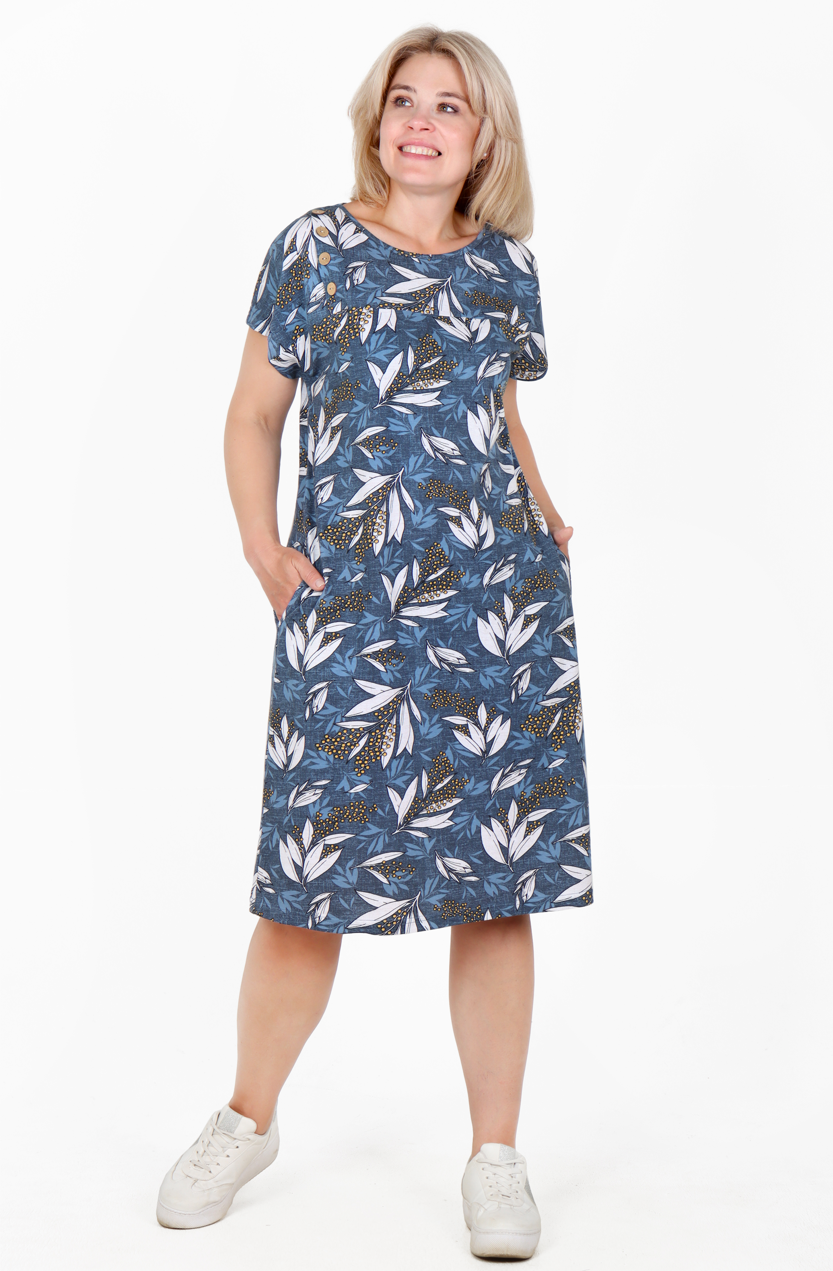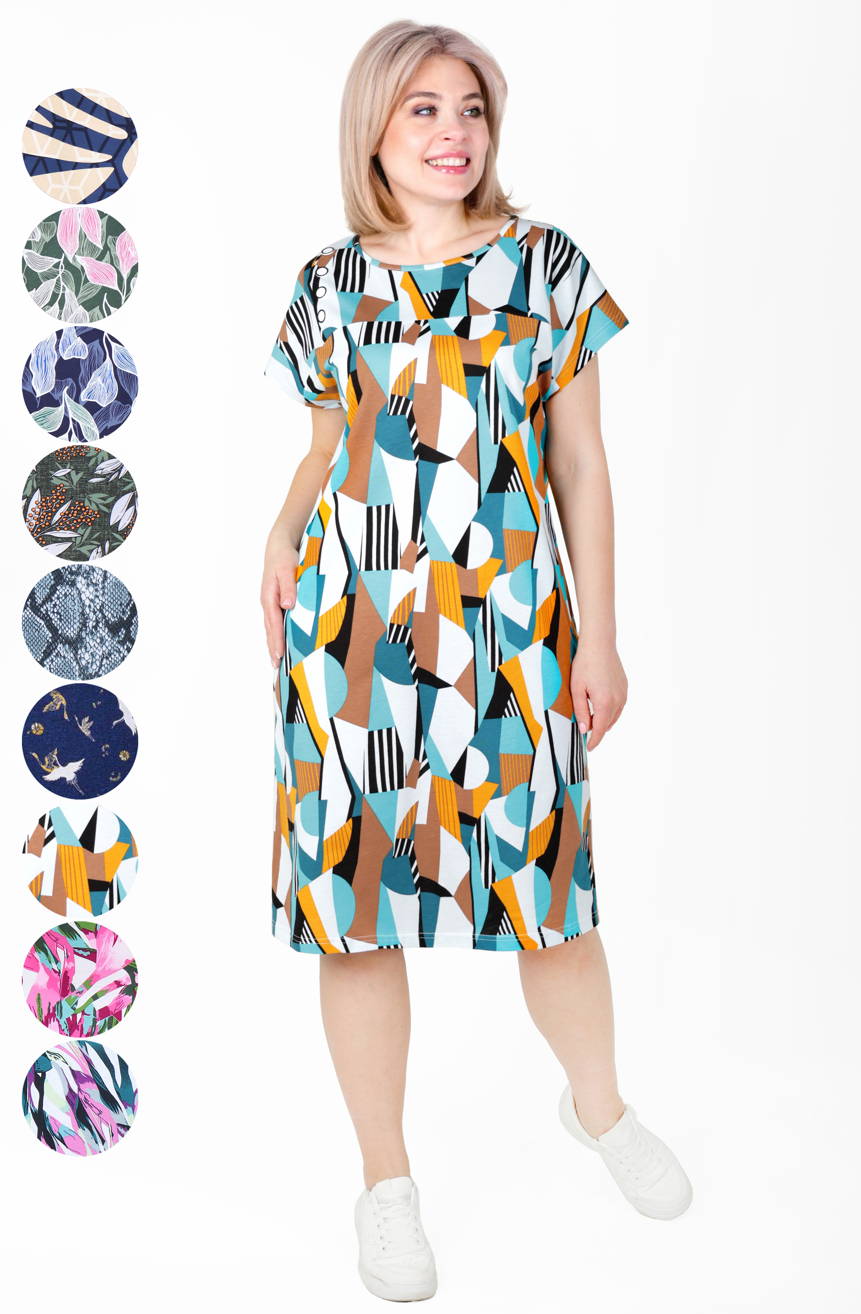 Туника из приятного к телу хлопка, с коротким спущенным рукавом, длина немного ниже колена.