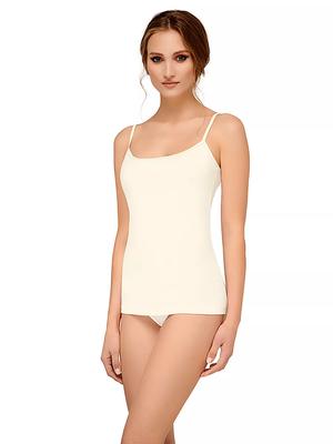 Майка женская на тонких бретелях. Бретели визуально облегчают модель, что позволяет носить ее как самостоятельную вещь летом, так и в период межсезонья под жакеты и кардиганы.
