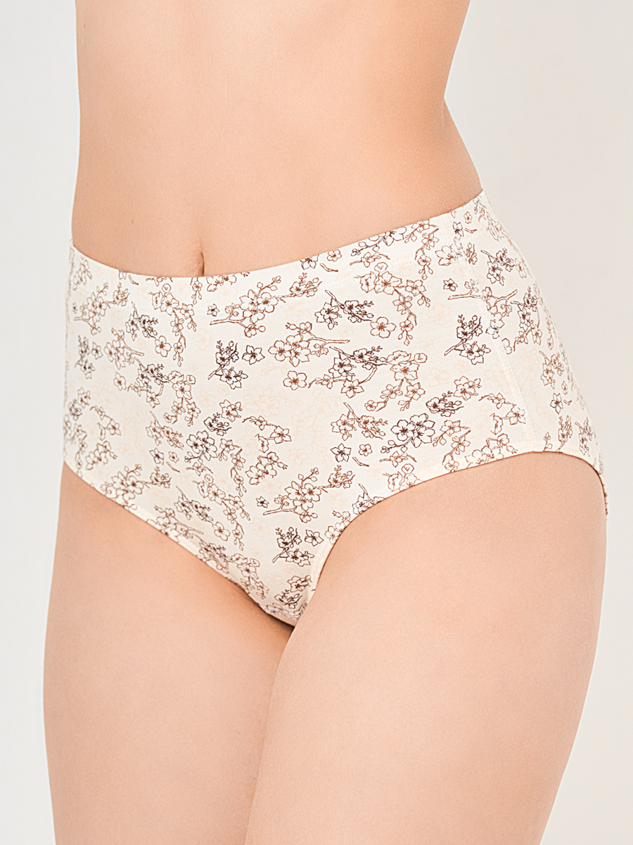 Трусы с высокой посадкой. По поясу широкая резинка (2 см). Боковая часть высокая. Срезы обработаны швом вподгиб. Удобная модель на каждый день.