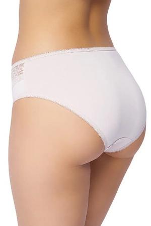Трусы – классика. Высота модели чуть выше средней. Передняя деталь украшена кружевной вставкой. Декор - бантик. Задняя деталь из хлопка. Срезы обработаны на плоскошовной машине.