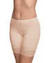 Удлинённые панталоны с высокой линией талии. Низ изделия украшает широкое кружево с цветочным рисунком, за счёт чего модель выглядит нарядно. Пояс обработан в подгиб.