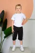 Шорты-прямые, удлиненные с печатными лампасами, боковой шов смещен на перед. Пояс притачной с резинкой и шнуром внутри.