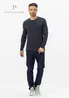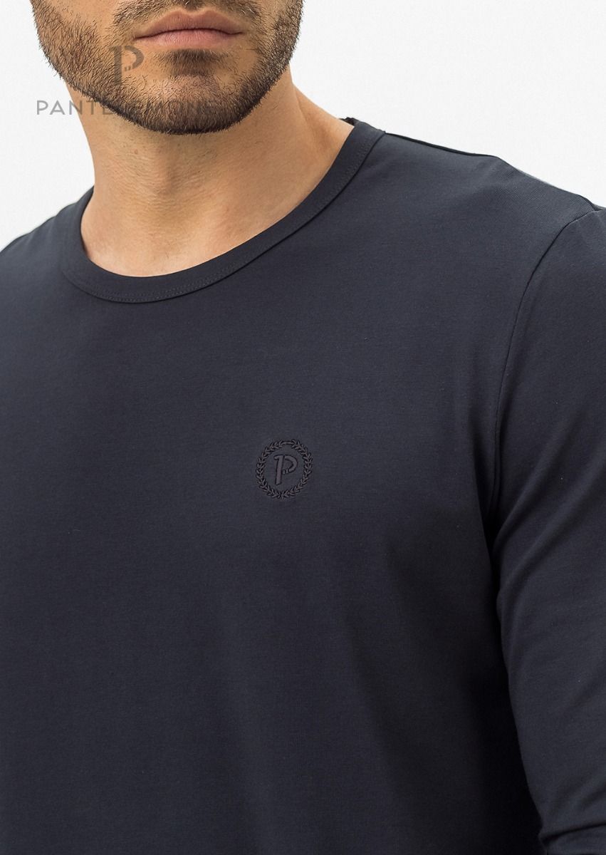 Футболка с втачным длинным рукавом, полу облегающего силуэта, с круглым вырезом горловины. На передней фирменная вышивка. Кулирная гладь.