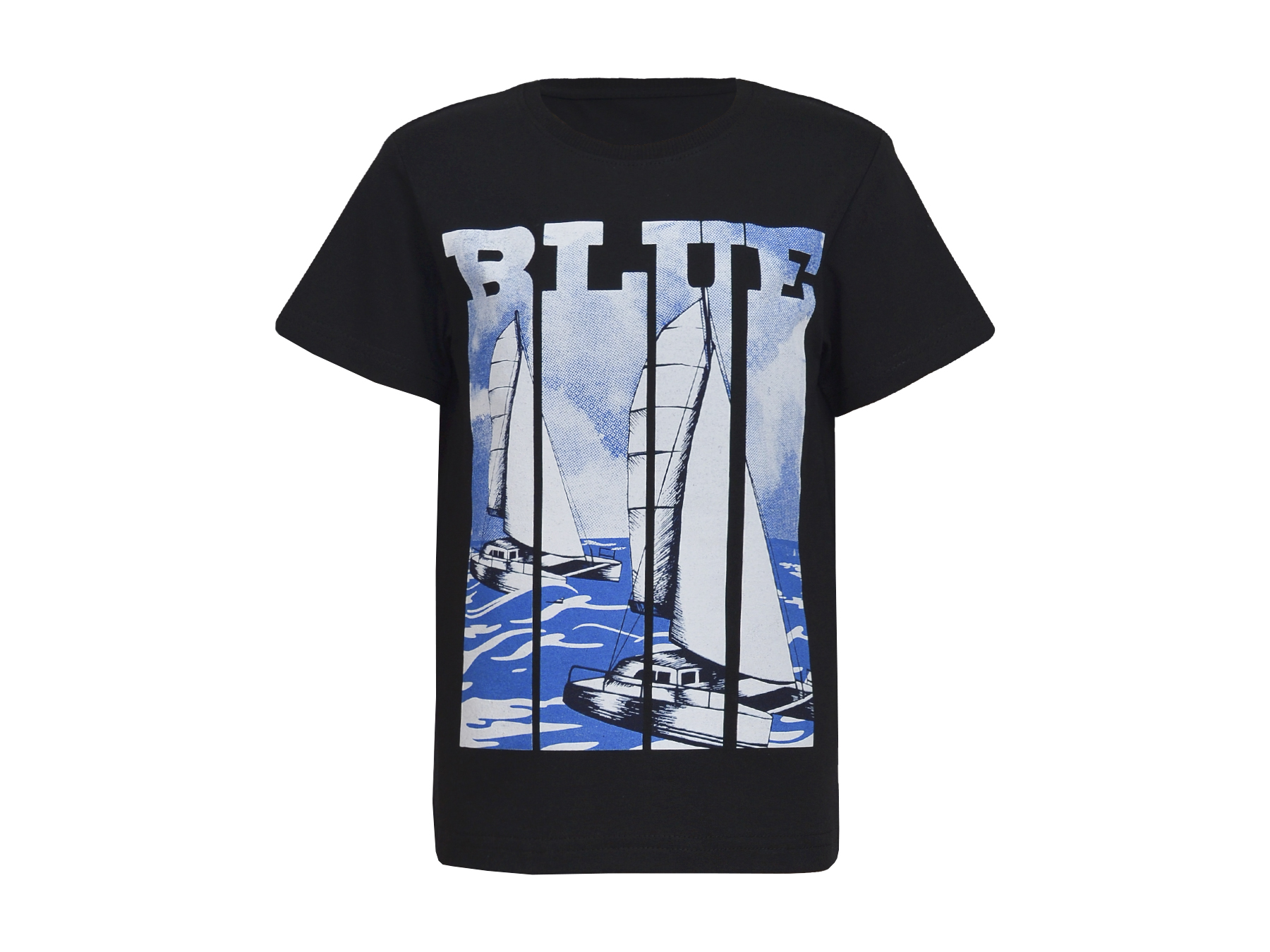 Футболка-прямой силуэт, перед с печатью, рукав втачной короткий. Горловина обработана ластиком. Низ изделия и рукава подшиты.