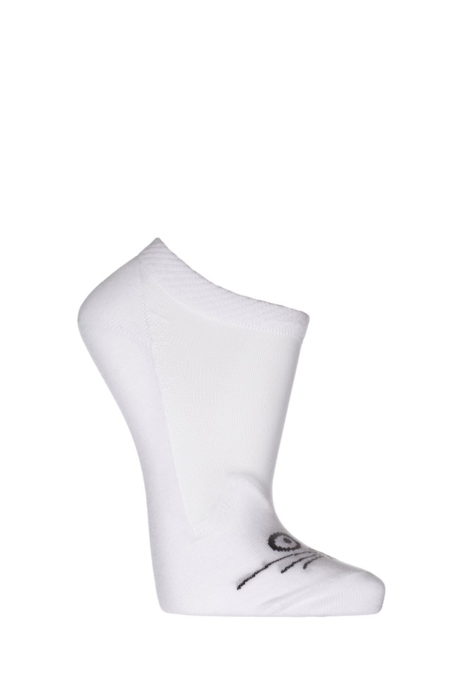 Носки женские летние укороченные из полимида с хлопковым следом, на мыске рисунок "кошачья мордочка".