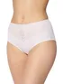 Трусы с высокой линией талии. Передняя деталь декорирована кружевной вставкой, настроченной на трикотажное полотно, в верхней части. Боковой шов смещён на переднюю деталь. Задняя деталь полностью из хлопка. Срезы обработаны швом "зигзаг".