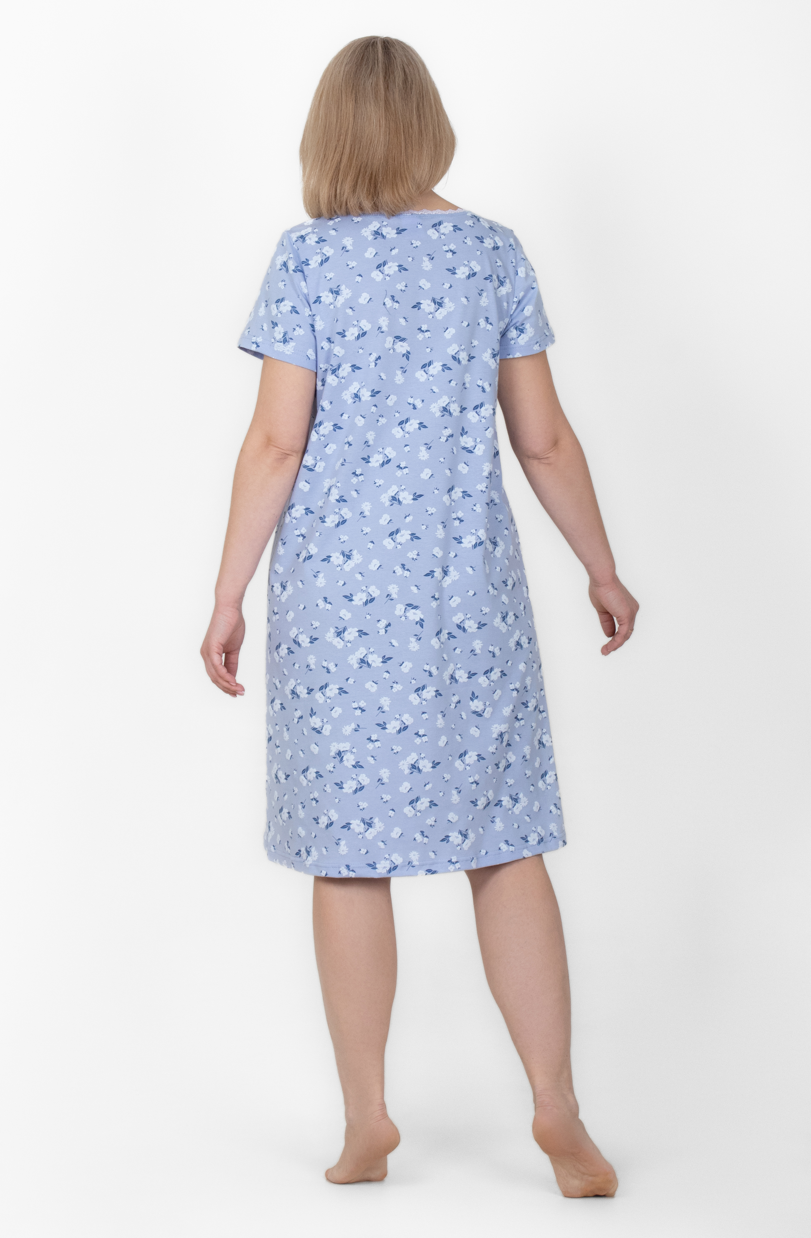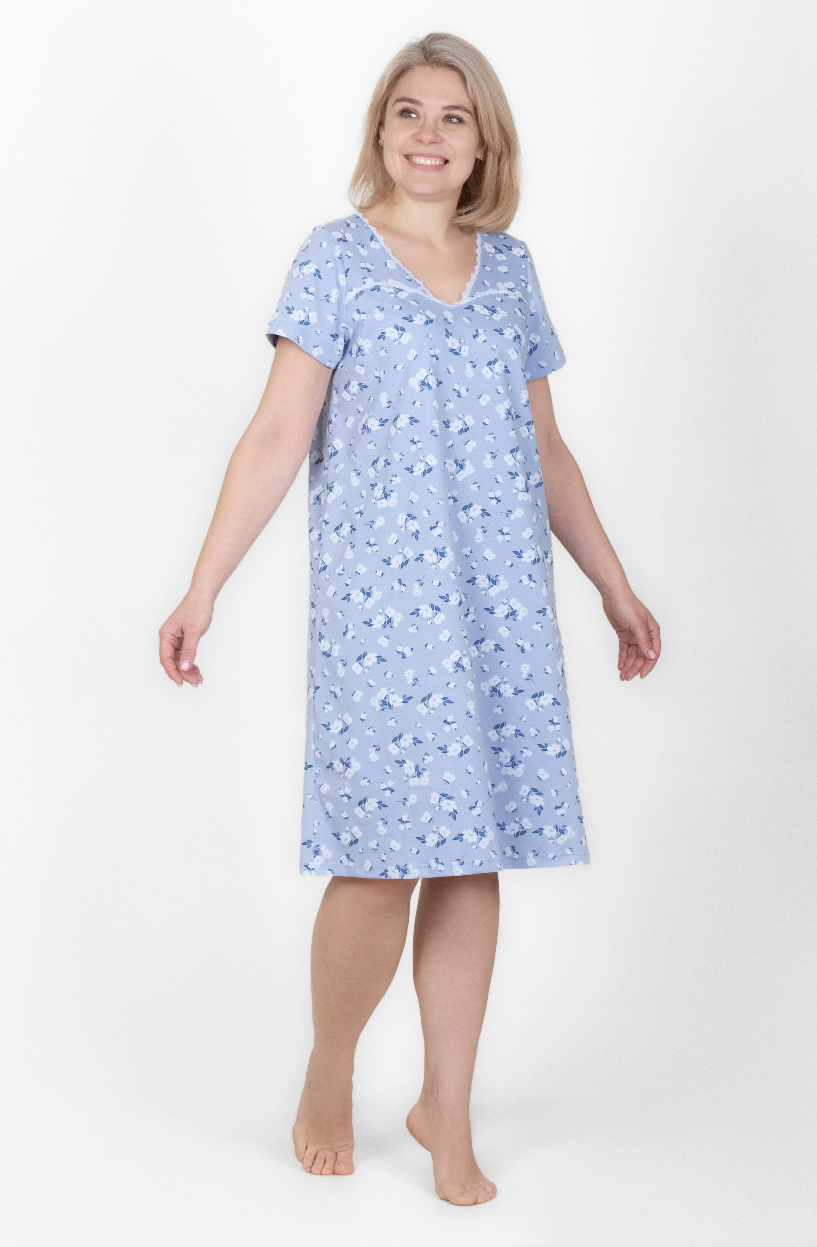 Сорочка из 100% хлопка, длина немного ниже колена.