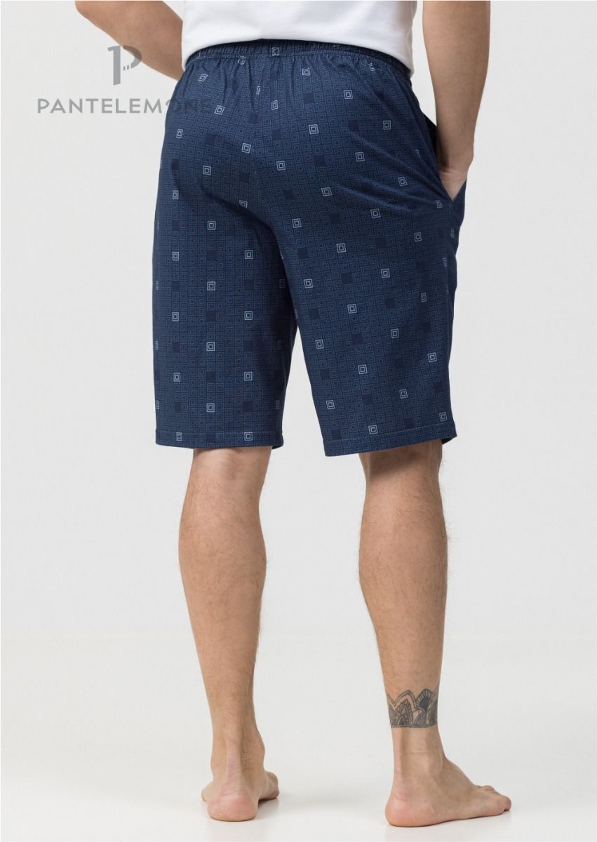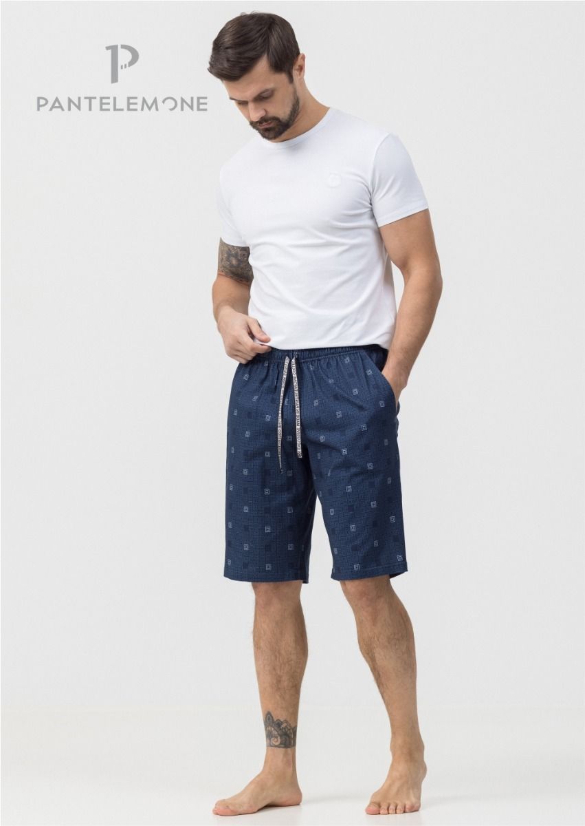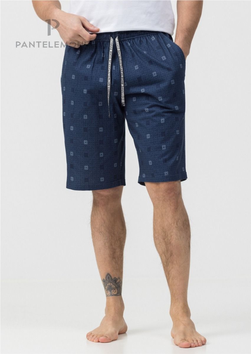 Шорты свободного кроя с цельнокроеным поясом. В поясе резинка и шнур. Выполнены из набивного полотна. Карманы наклонные.