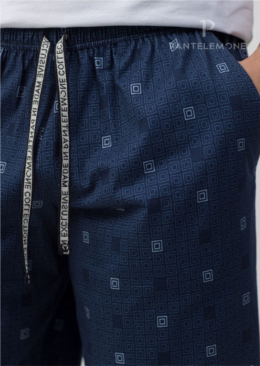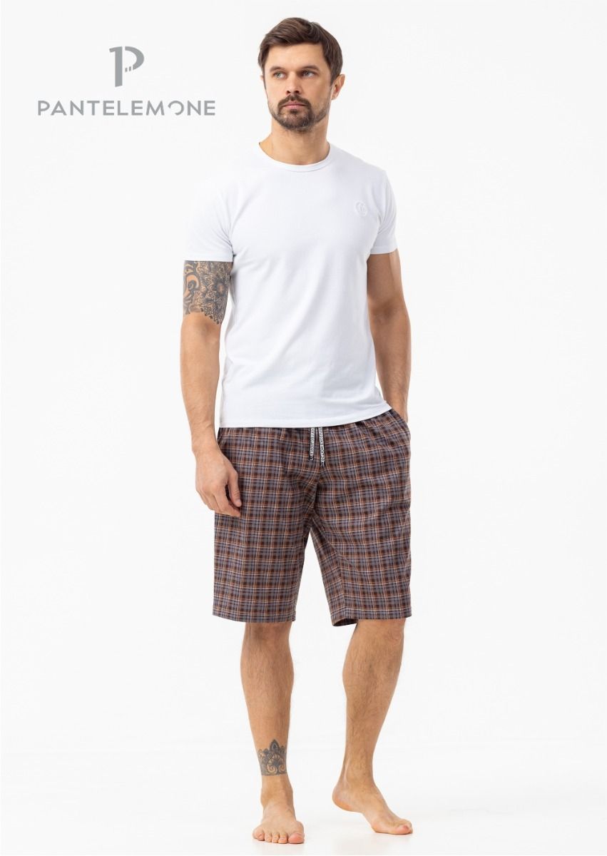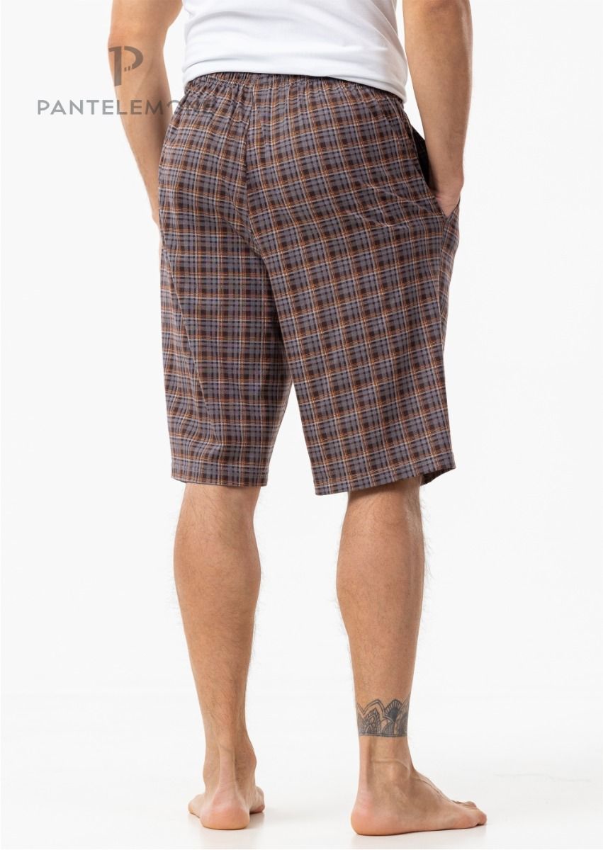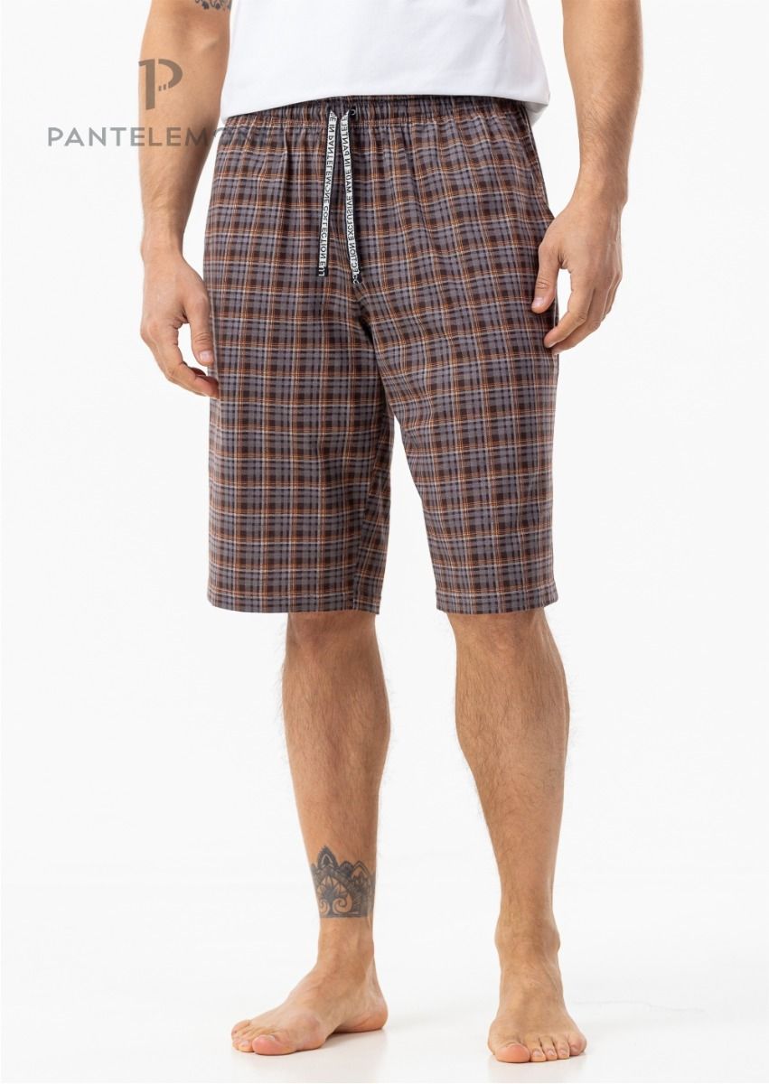 Шорты свободного кроя с цельнокроеным поясом. В поясе резинка и шнур. Выполнены из набивного полотна. Карманы наклонные.