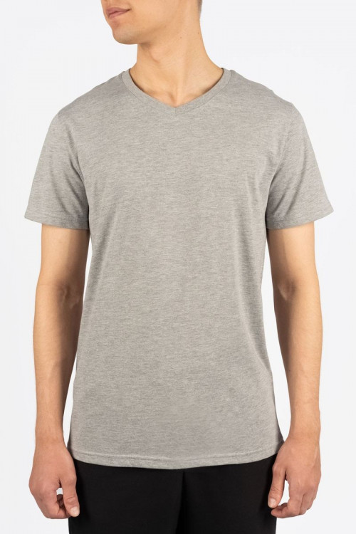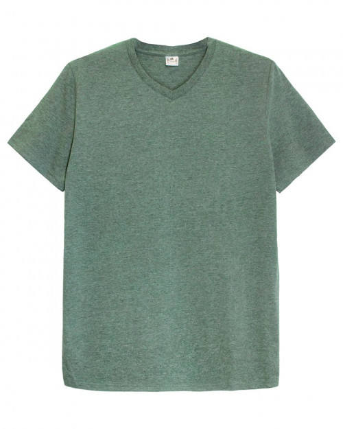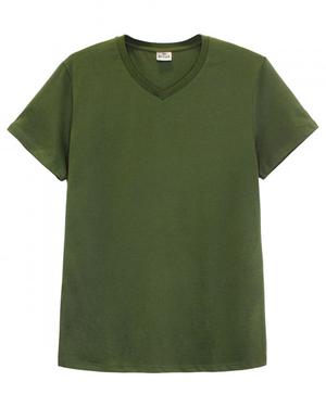 Футболка взрослая прямого силуэта с втачным коротким рукавом. Горловина V-образная форма, обработана воротником из рибаны. По горловне полочки декоративная отстрочка.Низ изделия и рукавов обработан швом в подгибку. Модель рассчитана на рост 176-182.