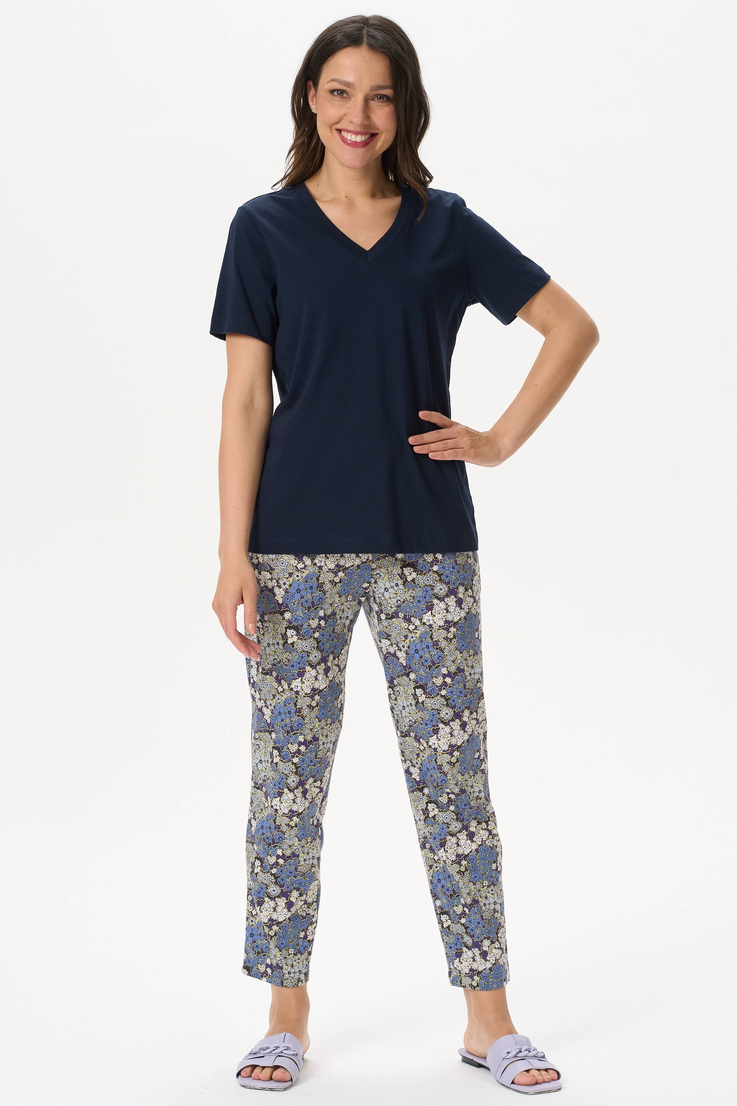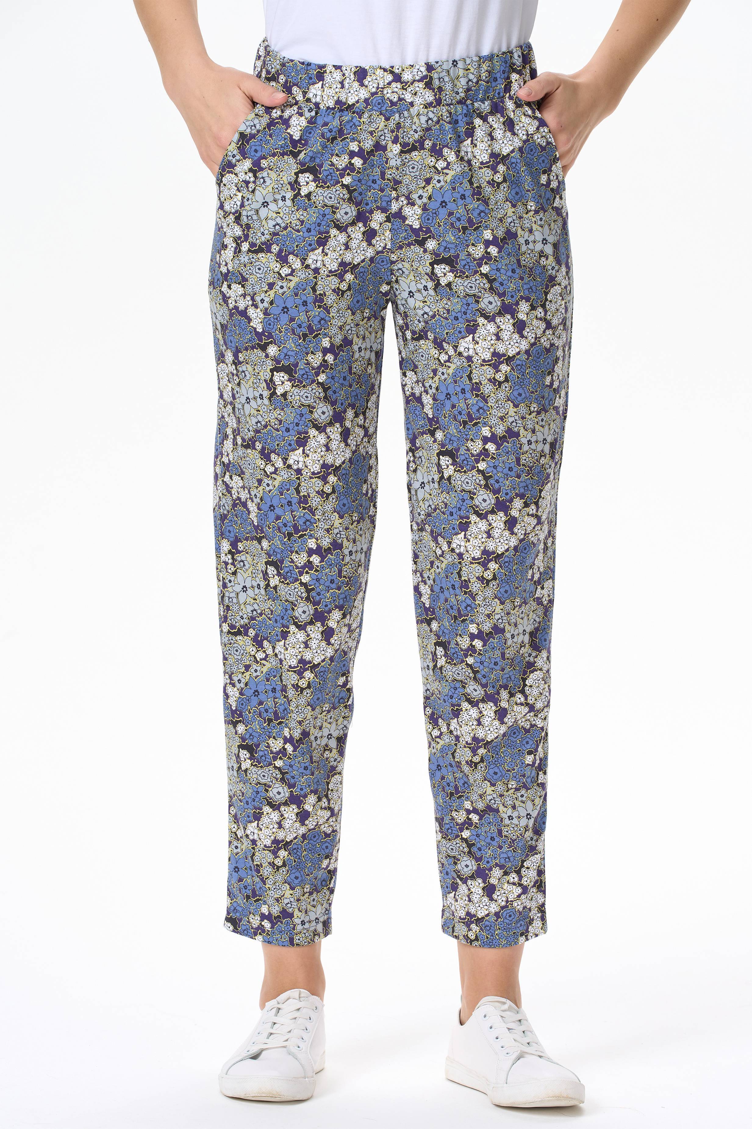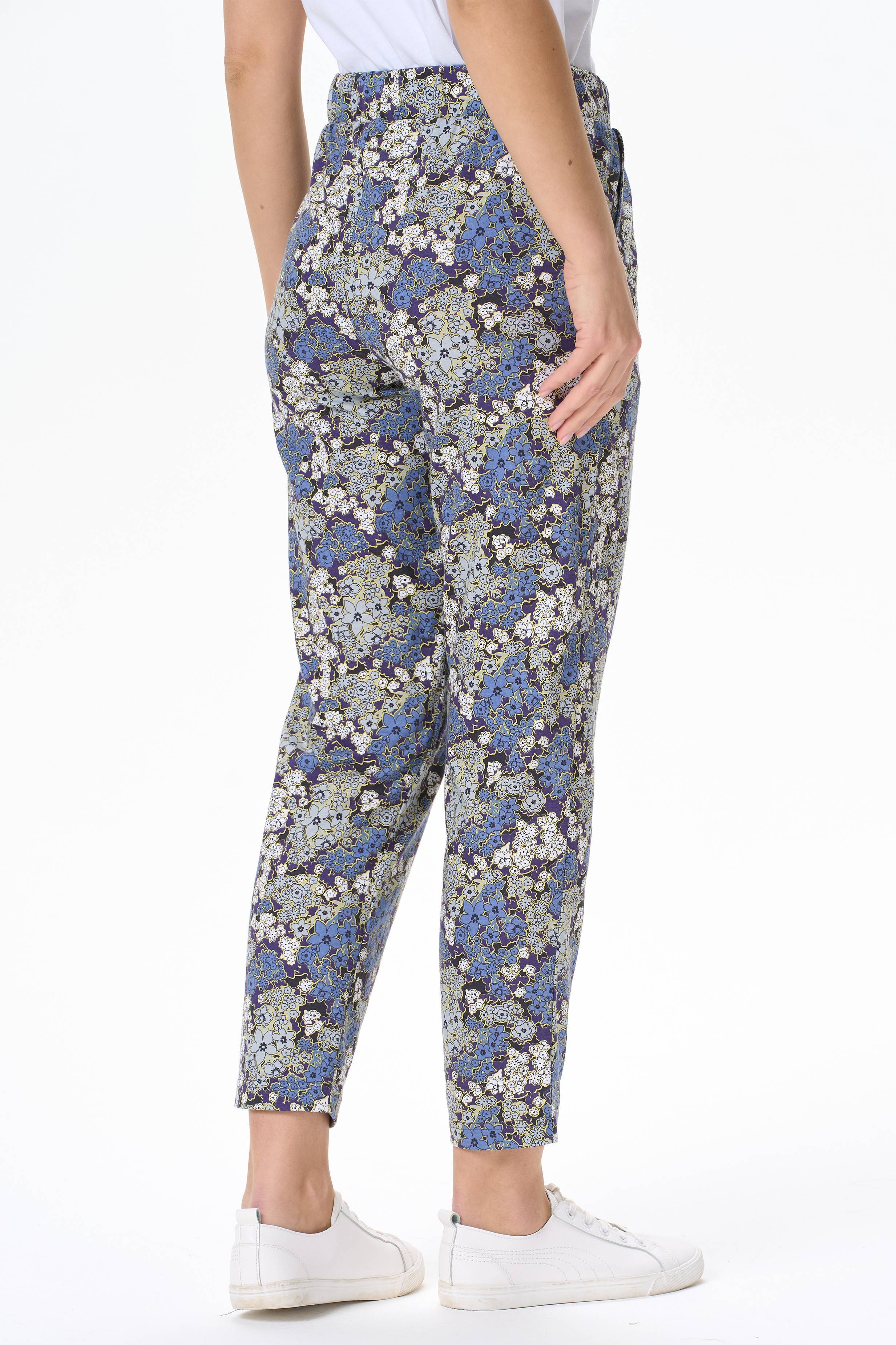 Описание: Универсальные брюки длиной 7/8 из хлопкового полотна. Пояс с эластичной лентой, два фигурных боковых кармана. Длина по боковому шву (без учета пояса) 87см. Рост модели на фото 177.
