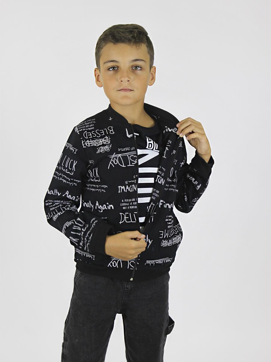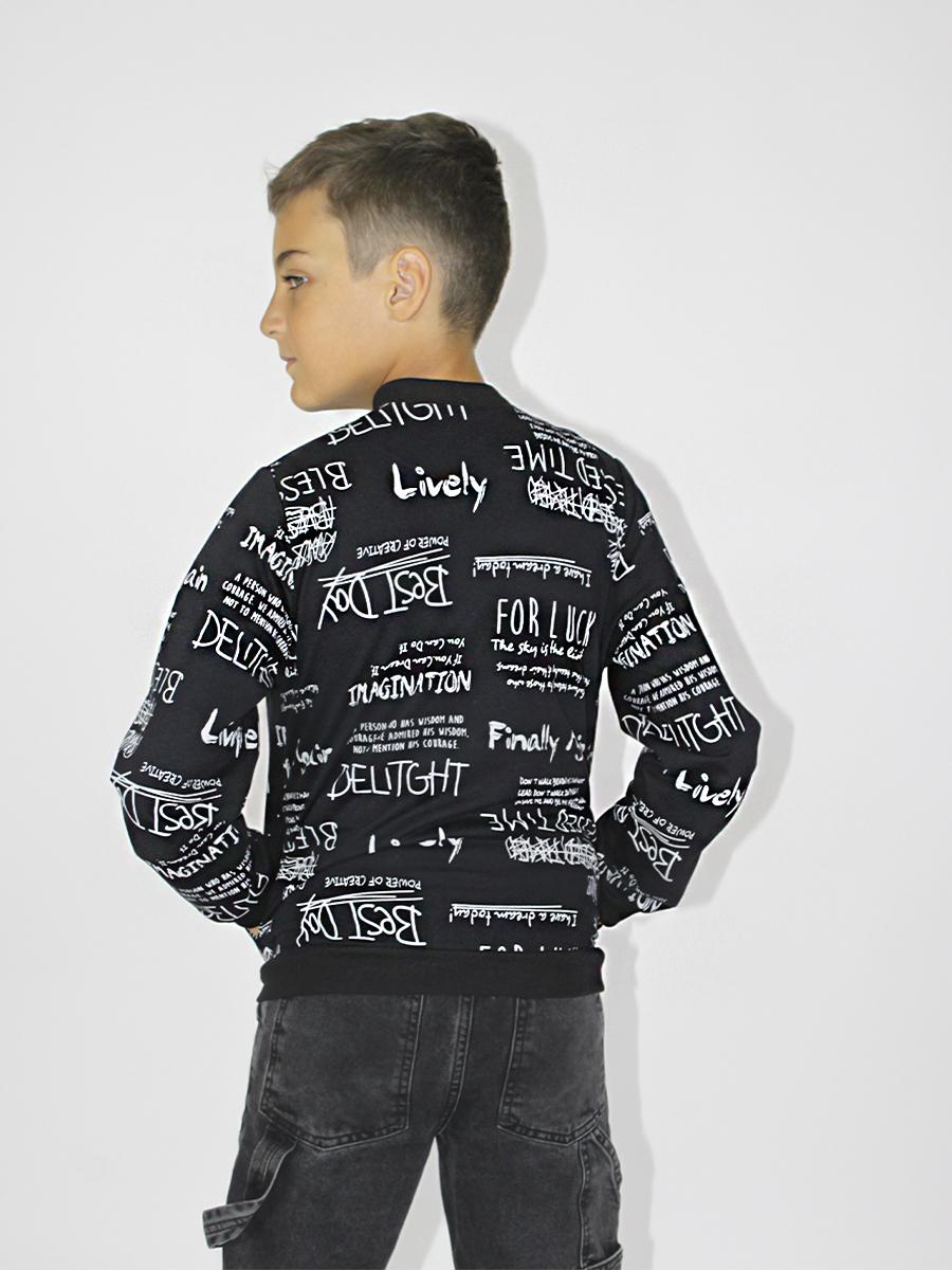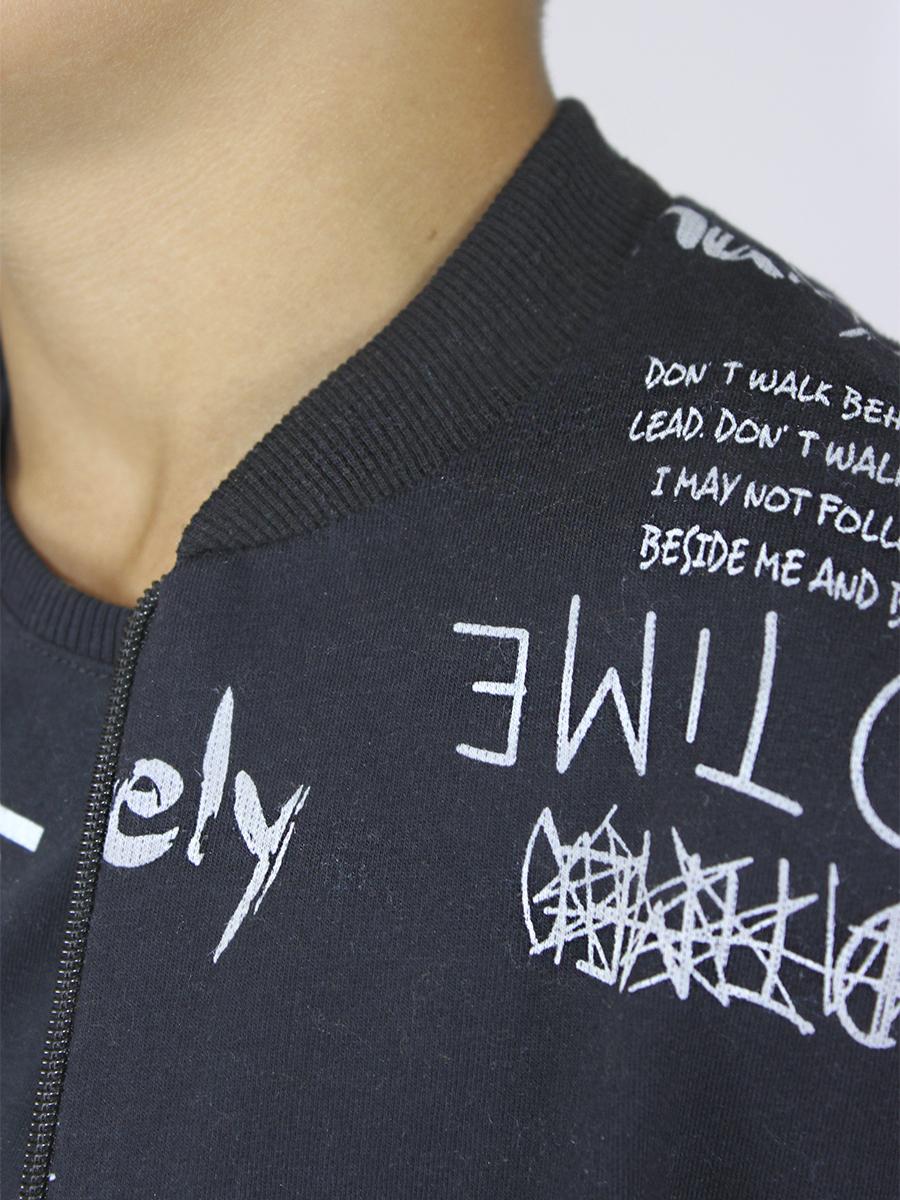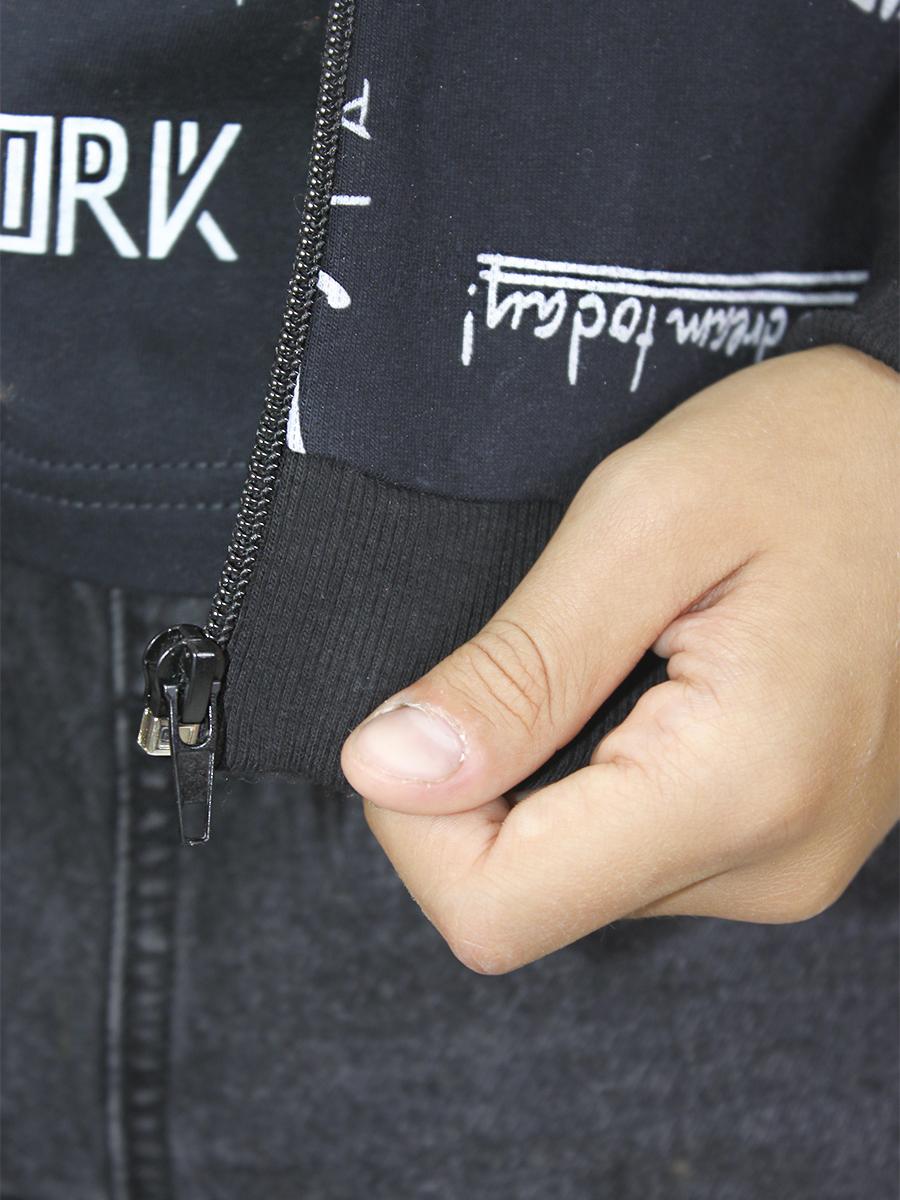 Джемпер-прямой, на поясе из ластика, воротник стойка из ластика. Центральная застежка на "молнию". Рукав втачной, длинный на манжете из ластика. Два кармана в боковом шве. Печать на поясе,манжетах и воротнике.