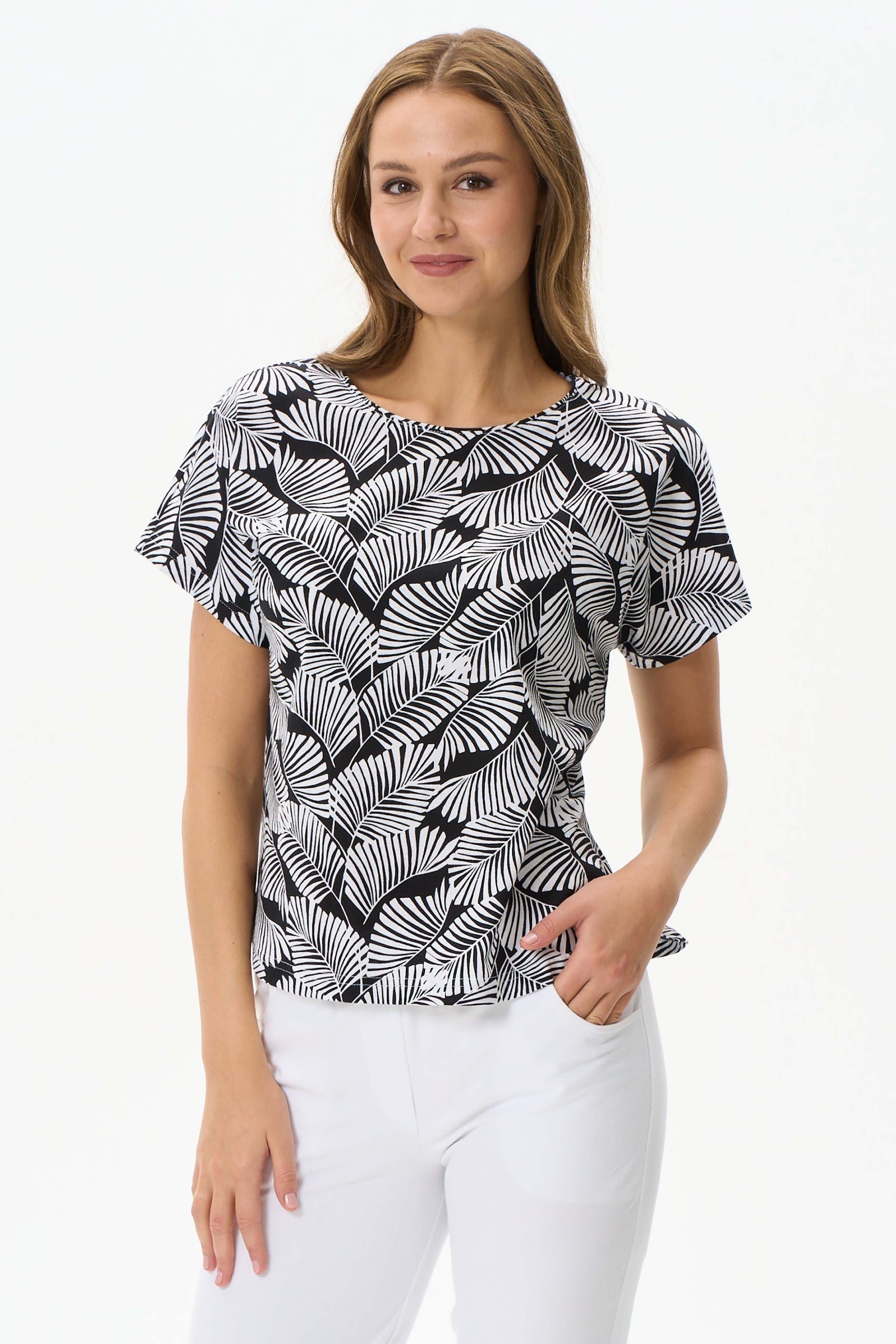 Описание: Футболка из хлопкового полотна. Круглый вырез горловины, цельнокроеные короткие рукава, фигурная линия низа. Рост модели на фото 178см.