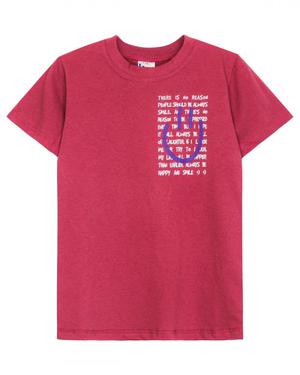 Футболка для девочки прямого силуэта с втачным коротким рукавом. Горловина круглая, обработана воротником из кулирки. Низ изделия и рукавов обработан швом в подгибку. На полочке принт шелкография.
