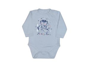 Полукомбинезон (боди)-застежка ассиметричная на переде слева (справа) и по низу изделия на кнопки. Рукав втачной длинный, печать по переду. Горловина, край борта и низ изделия-окантованы.