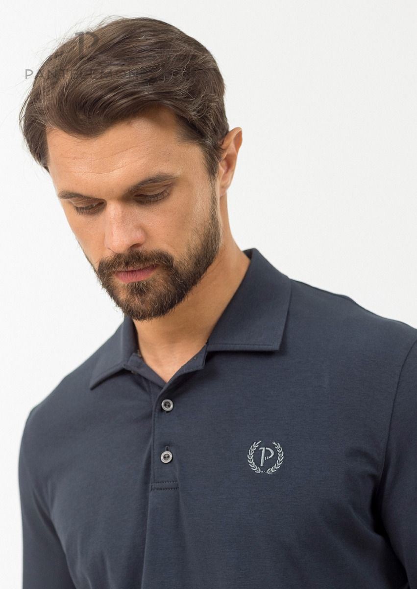 Футболка поло с втачным длинным рукавом, полуоблегающего силуэта, отложным воротником, с застежкой на пуговицах. На передней фирменная вышивка.