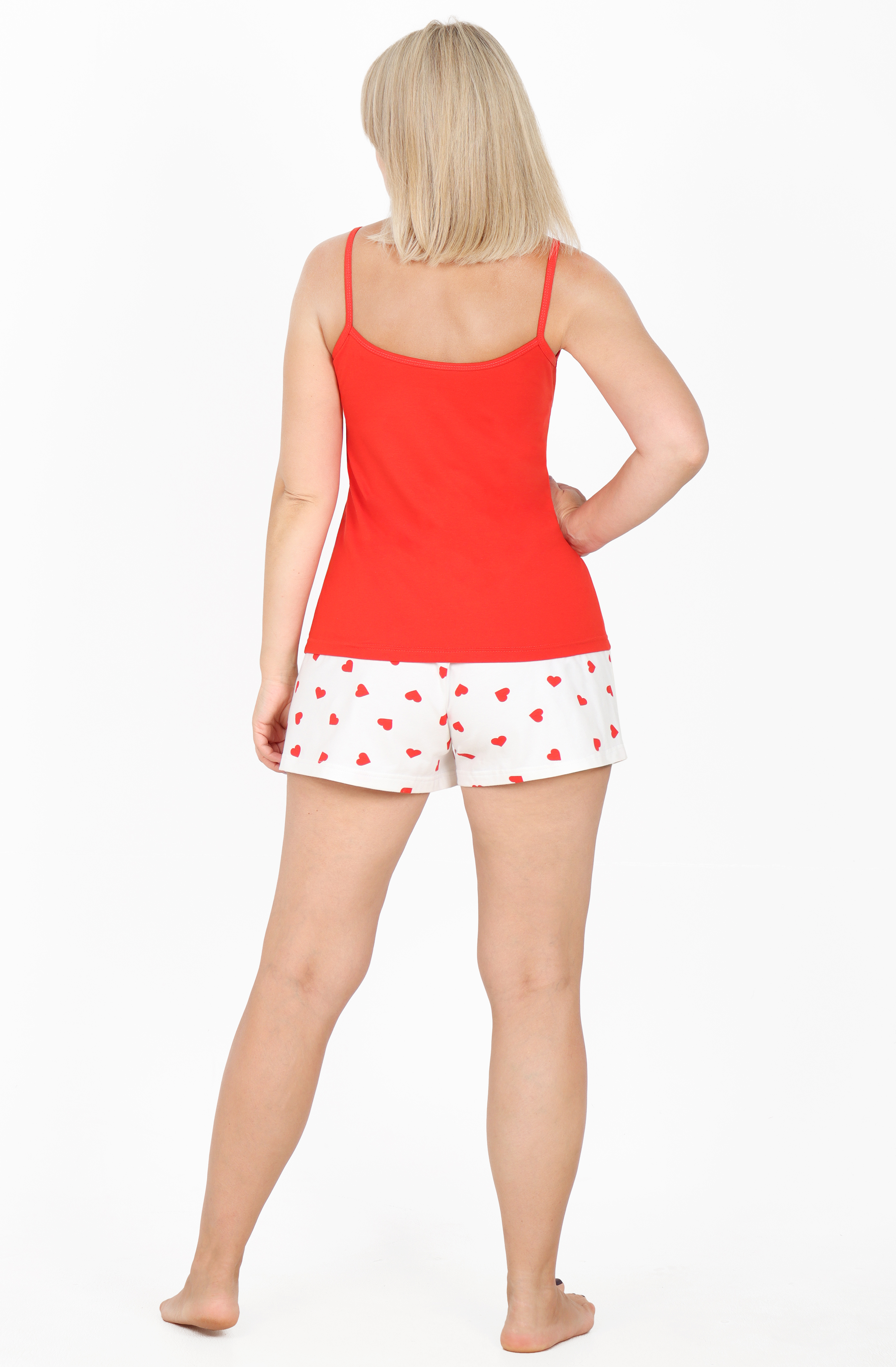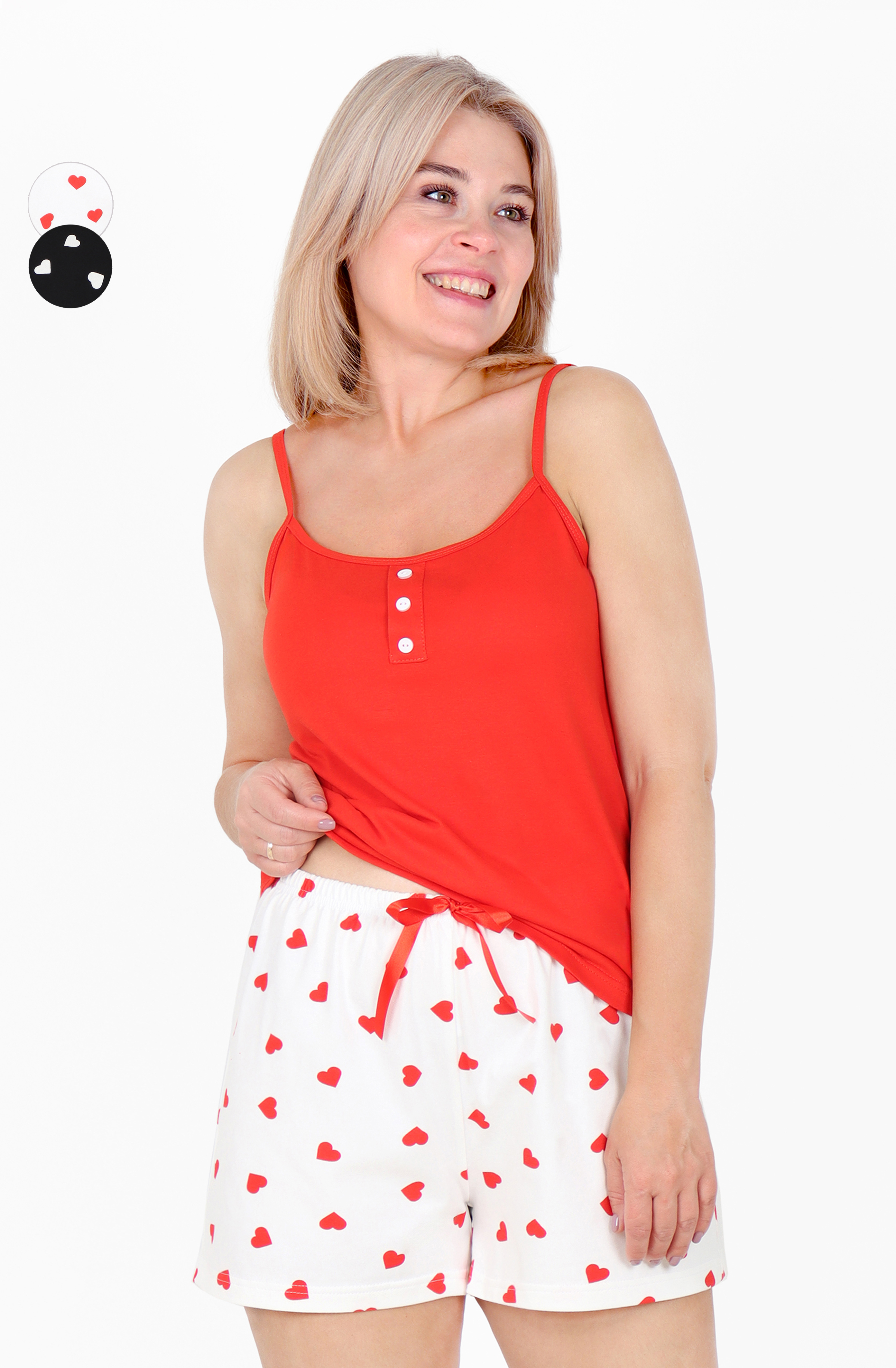 Эта пижама - идеальное сочетание удобства, стиля и нежности. Она подойдет не только для сна, но и для домашнего отдыха. Шорты обладают удобной посадкой, идеальной длиной и мягкой резинкой, не стесняют движений. Однотонный топ-майка в тон рисунка на бретелях. Пижама изготовлена из мягкого и приятного материала, который обеспечивает комфорт и позволяет коже дышать. Данная модель сделает ваш домашний образ милым и женственным . Отлично сидит на любом типе фигуры.