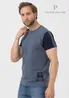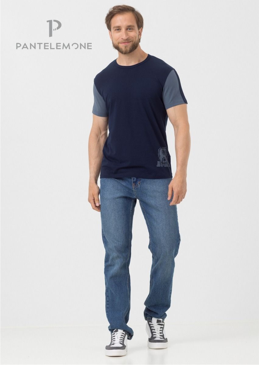 Футболка с втачным рукавом, полуоблегающего силуэта, с круглым вырезом горловины. На передней детали принт. Рукава контрастные с лампасами.