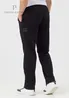 Брюки свободные, прямые из футера без начеса, с боковыми карманами, задние карманы накладные с отделкой хольнитенами. На задней левой детали принт. Пояс цельнокроенный с резинкой и шнуром.