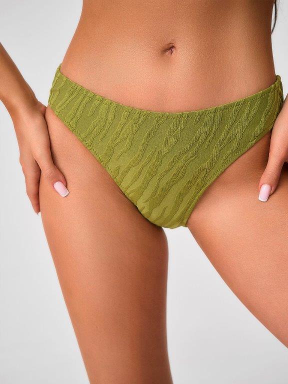 Раздельный купальник с чашкой soft bra из мягкого фактурного полотна. Бюстгальтер с мягкой чашкой,с подкладом и съемными формованными вкладышами. Без каркасов и без боковых корсетных вставок. Пластиковая деталь цвета янтаря соединяет чашки спереди. Бретели регулируемые, несъемные.Пластиковая застежка на спине. Плавки на подкладе, со средней посадкой. Тонкая резинка, подгиб и плоский шов по талии и срезу ножек.Декоративный завязывающийся пояс по линии талии из ткани купальника.