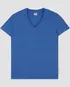 Футболка женская прямого силуэта с втачным коротким рукавом. Горловина V-образная, обработана воротником из основного полотна, в цвет изделия. Горловина спинки внутри обработана бейкой из кулирки. По горловине полочки отделочная строчка. Низ изделия и рукавов обработан швом вподгибку. Модель рассчитана на рост 164-170.