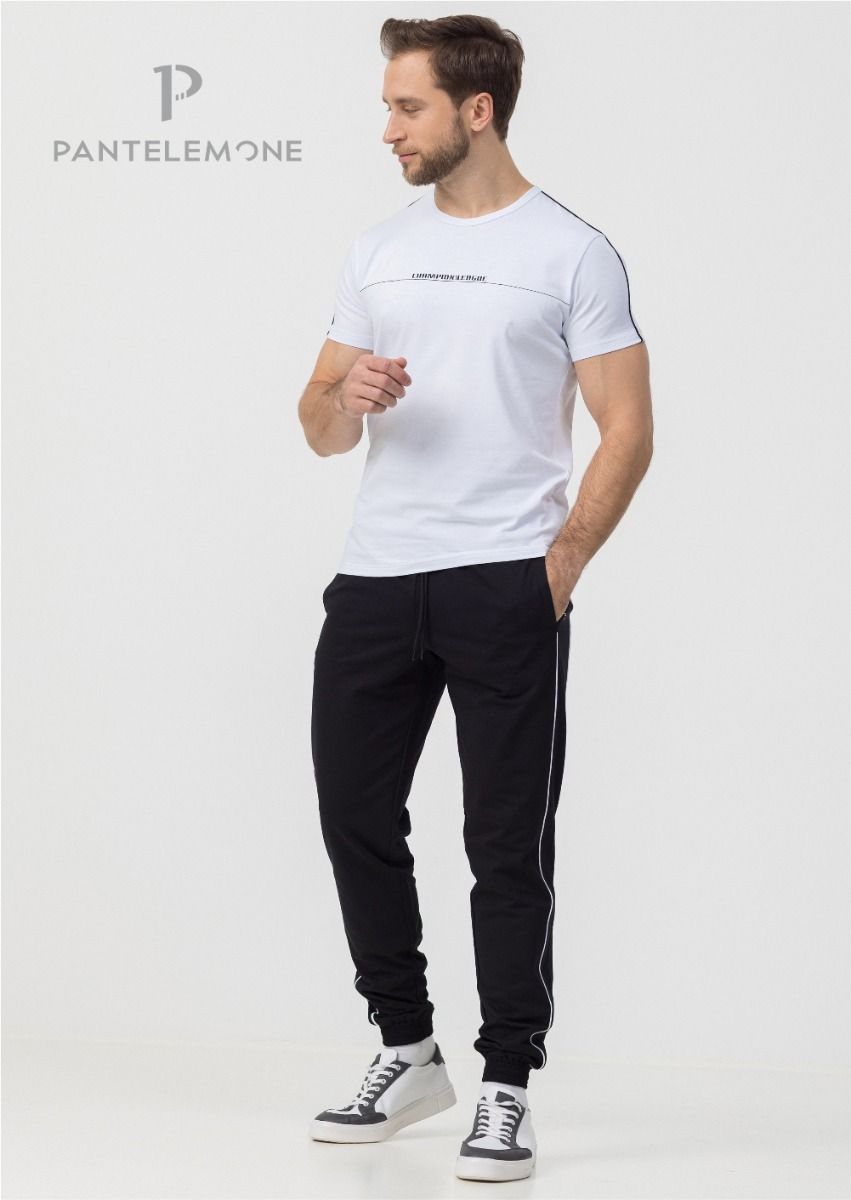Футболка с втачным рукавом, полуоблегающего силуэта, с круглым вырезом горловины. На передней детали принт. В плечевых швах и на рукавах контрастные канты.
