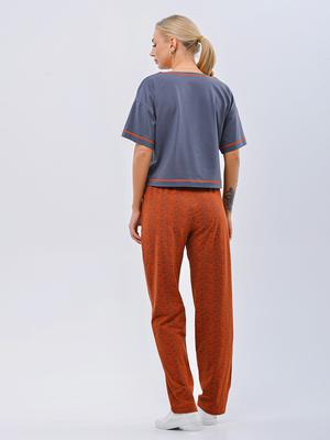 Брюки прямого кроя выполнены из набивного полотна с геометричным рисунком, что подчеркивает актуальность и модные тенденции. Мягкая тесьма на талии обеспечивает надежную фиксацию и комфорт при ношении.