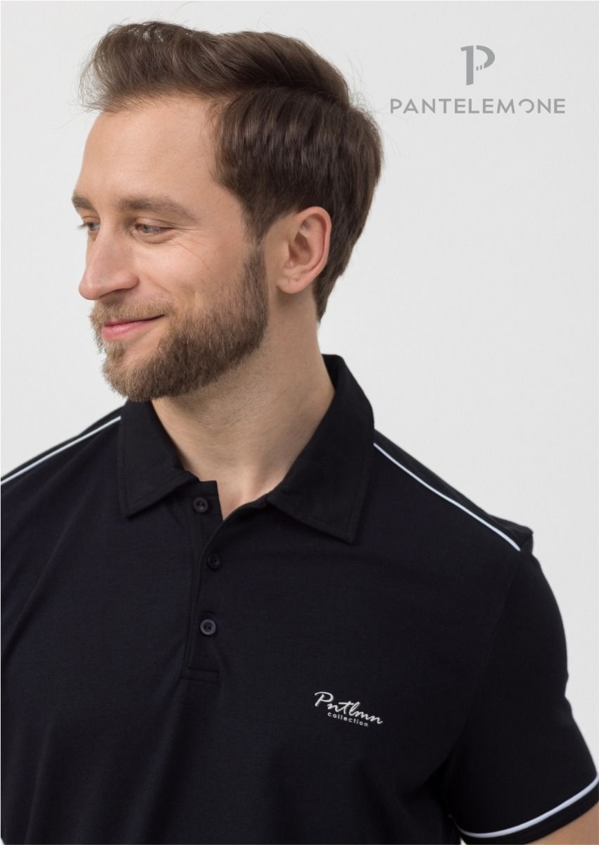 Футболка поло с втачным рукавом, полуоблегающего силуэта, с отложным воротником, застежка на пуговицах. На передней детали и на спинке контрастные канты.