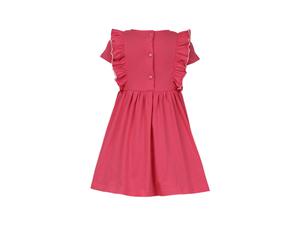 Платье-полуприлегающего силуэта, короткий рукав. Отрезная юбка со сборкой рельефами. Лиф с рельефами и рюшей. Вышивка на боковых клиньях юбки и центральной вставке переда. Горловина окантована и подшита, застежка сзади на пуговицы.