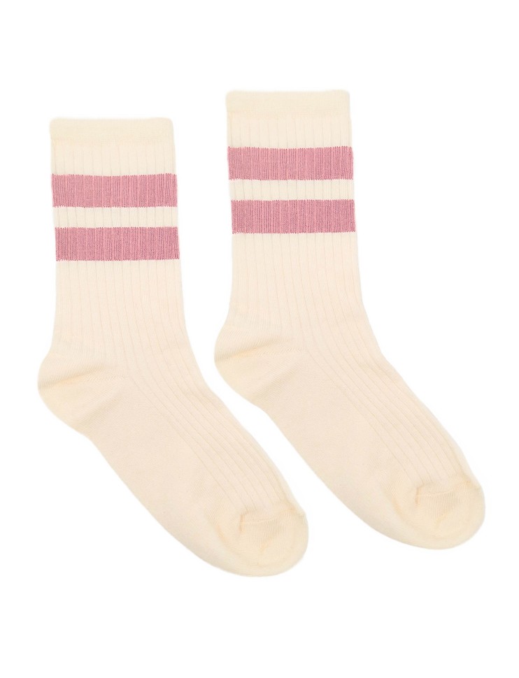 Носки женские с высоким паголенком в полоску контрастного цвета.