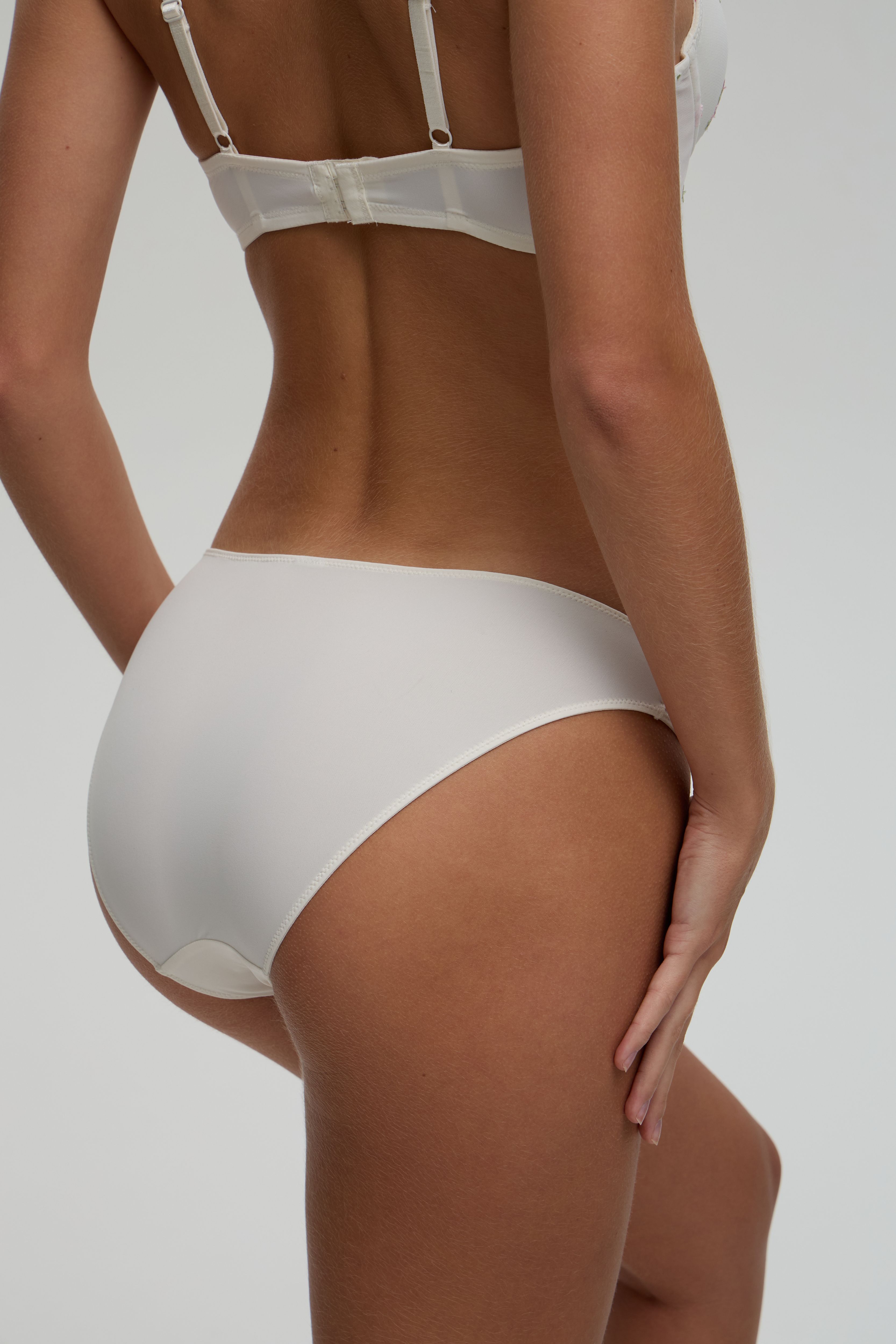 Трусики со средней посадкой формы Brief выполнены из тонкого полотна с вставкамииз сетки с вышивкой "цветочки". Нежная розочка украшает серединку переда. Верхний срез и вырезы ножек с эластичной резинкой. Ластовица из хлопка.