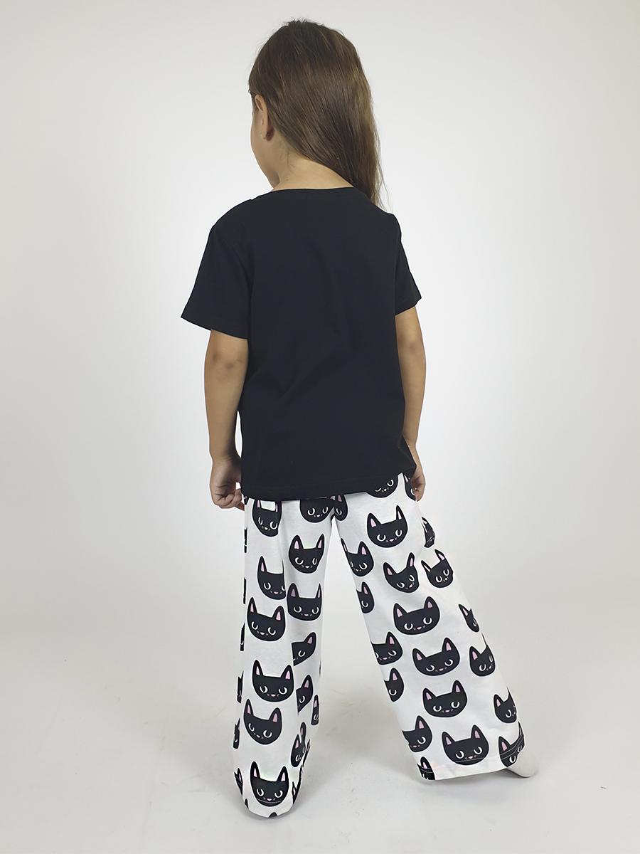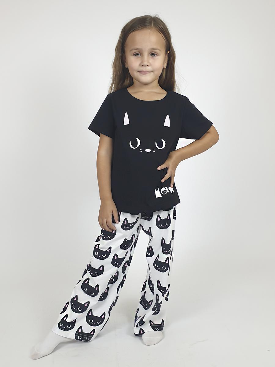 Кулирное полотно:100% х/б. Фуфайка-прямая,рукав втачной,короткий.Горловина обработана планкой.Печать на переде. Брюки-длинные,прямые,верхний срез подшит с резинкой.