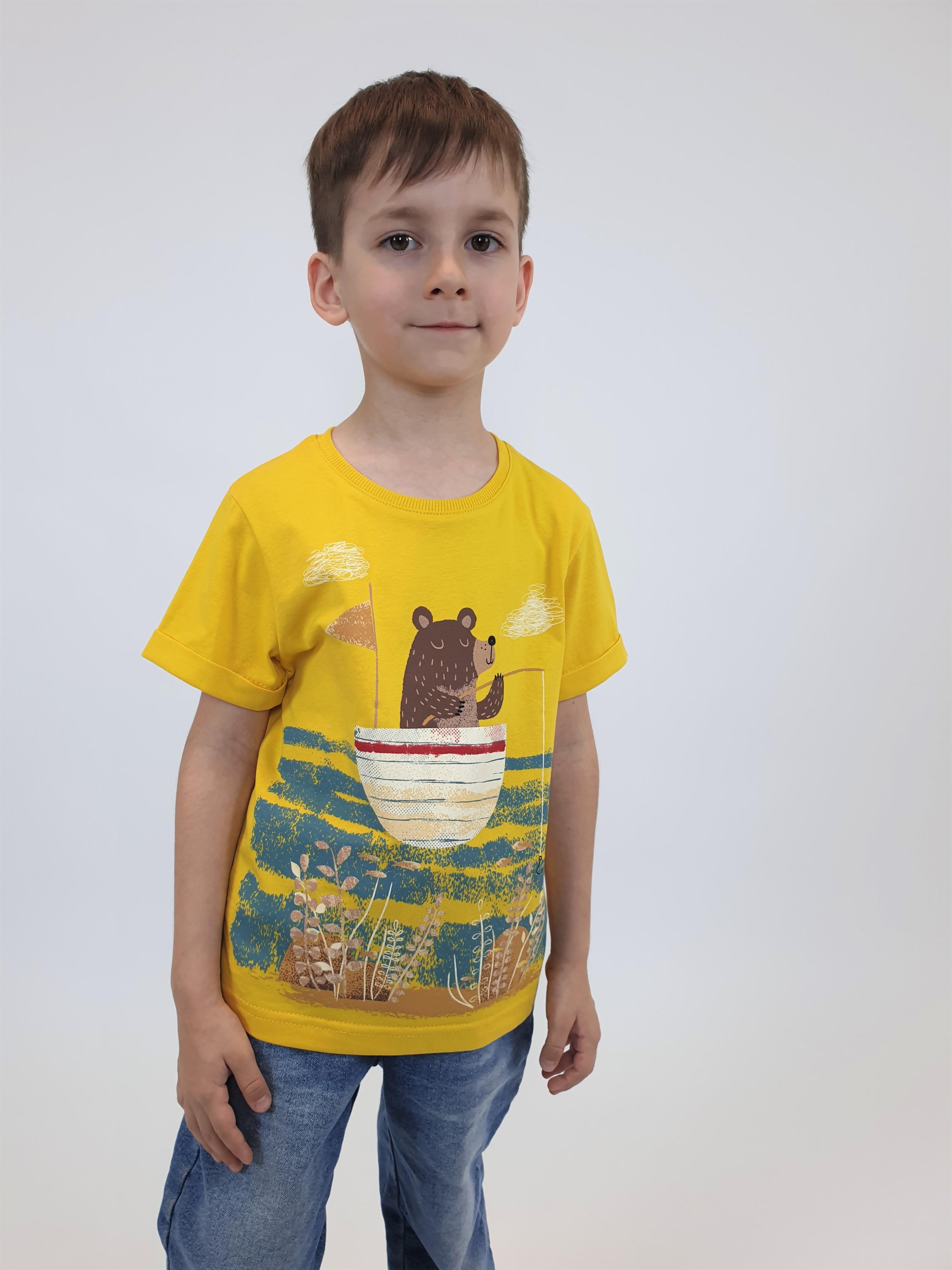 Кулирное полотно:100% х/б. Фуфайка-прямой силуэт,короткий втачной рукав с отворотом.Горловина обработана ластиком.Печать на переде и спинке.
