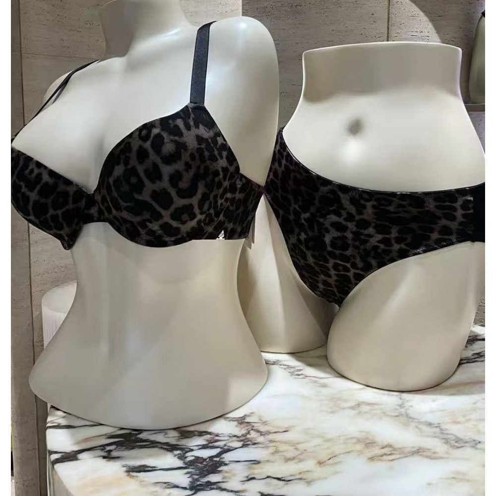 Комплект гладкий принт леопард, на тонком поролоне. Трусики бесшовные, средняя посадка.