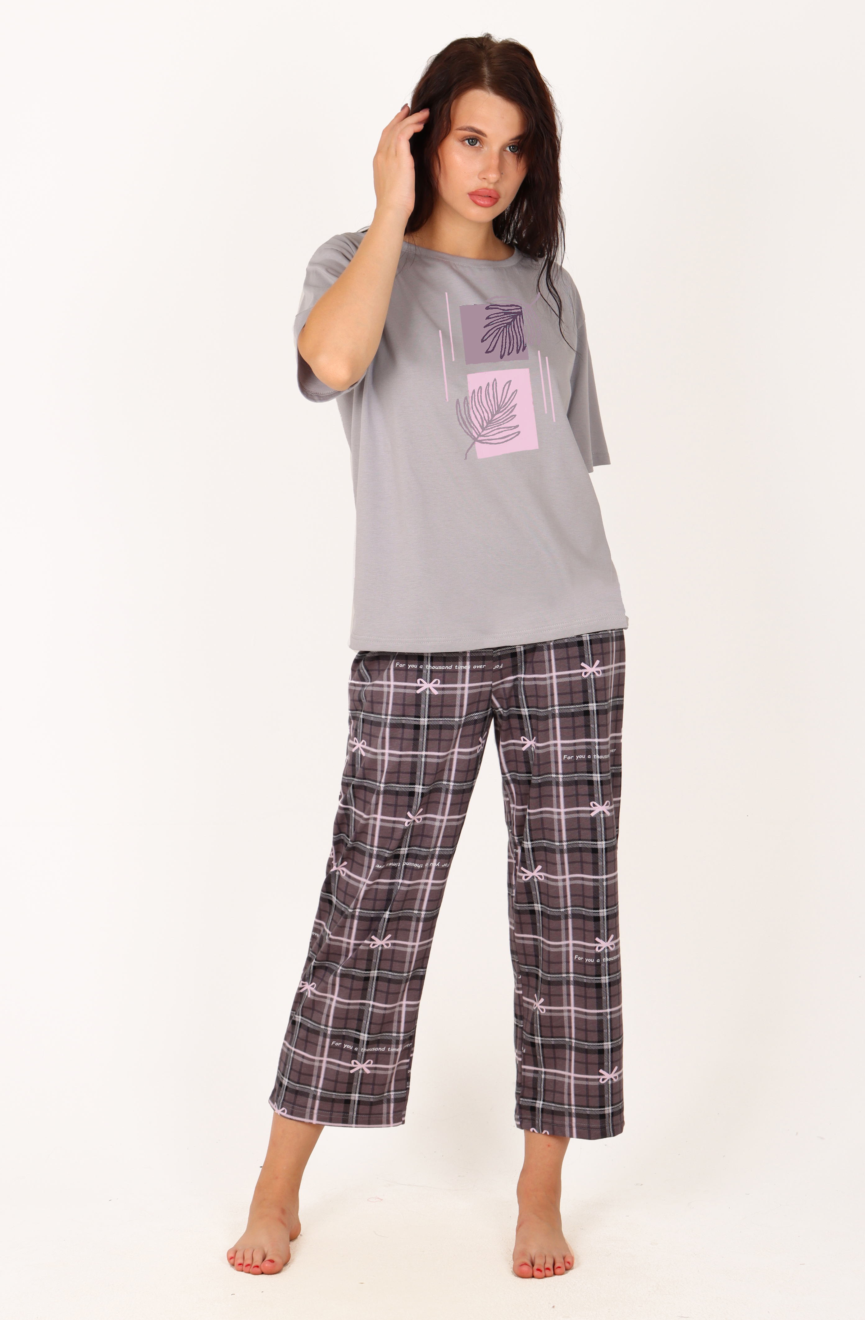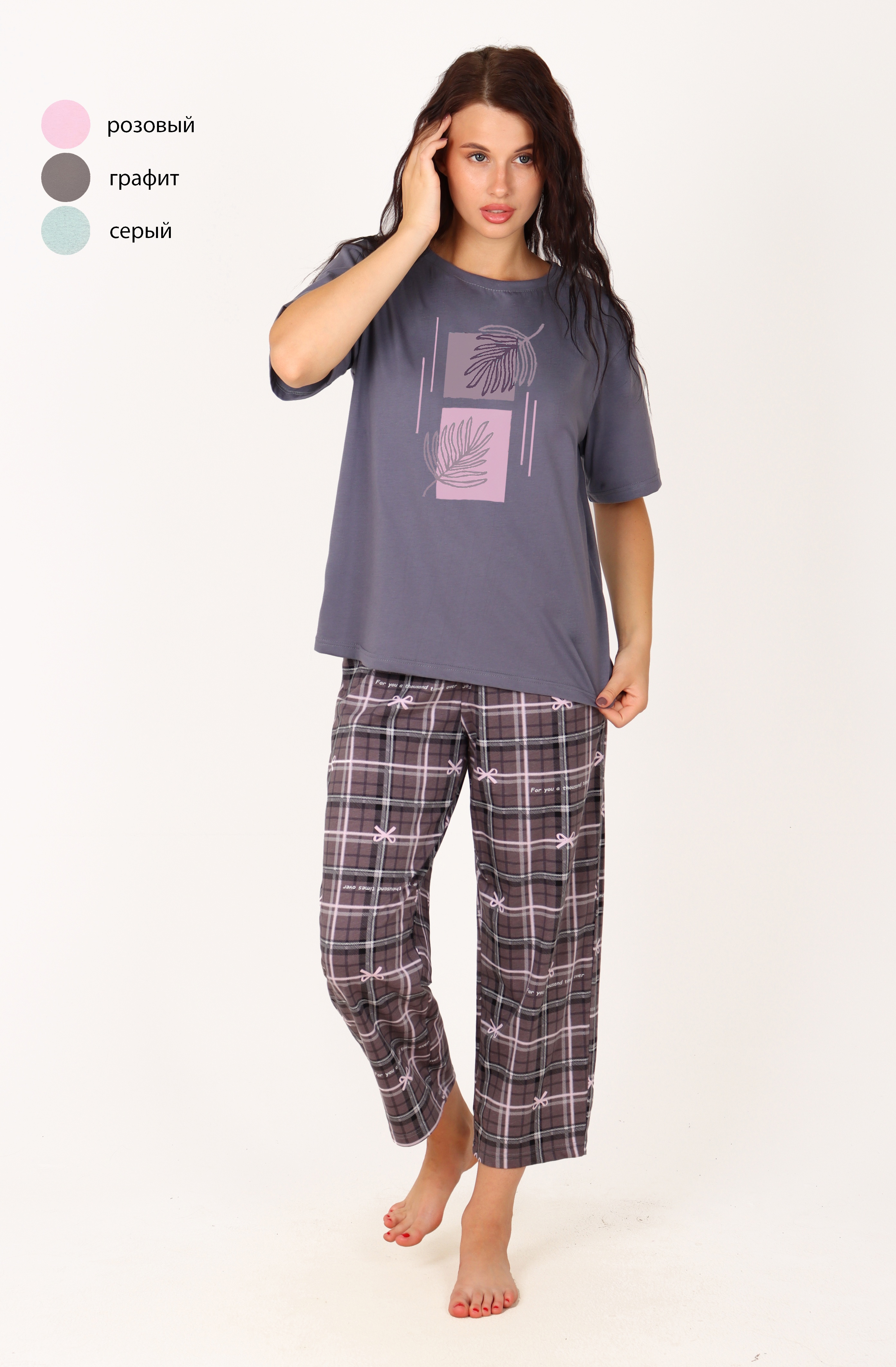 Легкая трикотажная пижама в классической дизайне. Мягкая хлопковая ткань приятна к телу, а комфортная резинка не стесняет движений. Мягкий стильный принт подарит настроение уюта .Футболка – оверсайз отлично садится на любую фигуру. Пижама может служить как для сна, так и в качестве домашней одежды. Представлена в трех расцветках.Легкая трикотажная пижама в классической дизайне. Мягкая хлопковая ткань приятна к телу, а комфортная резинка не стесняет движений. Мягкий стильный принт подарит настроение уюта .Футболка – оверсайз отлично садится на любую фигуру. Пижама может служить как для сна, так и в качестве домашней одежды. Представлена в трех расцветках.