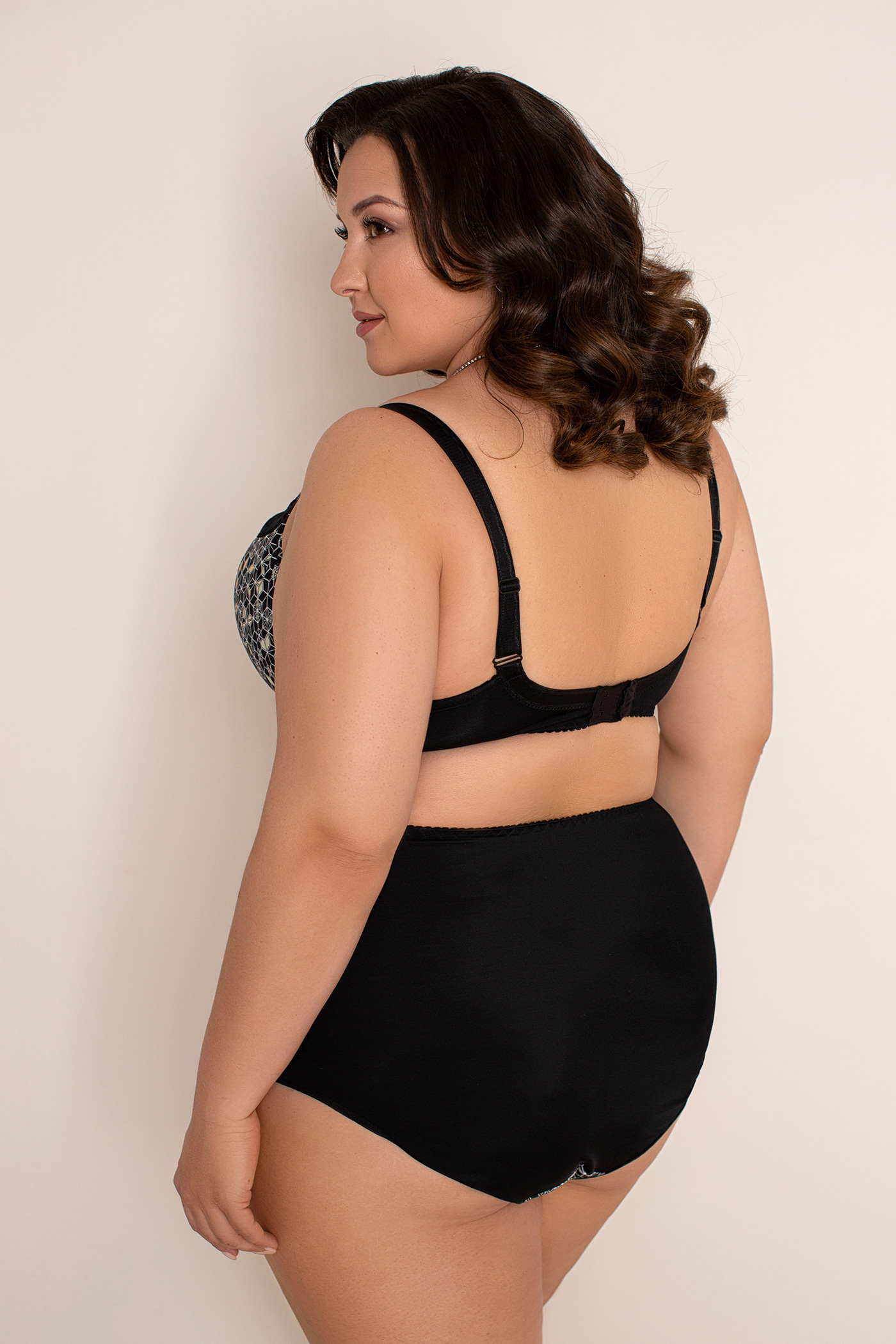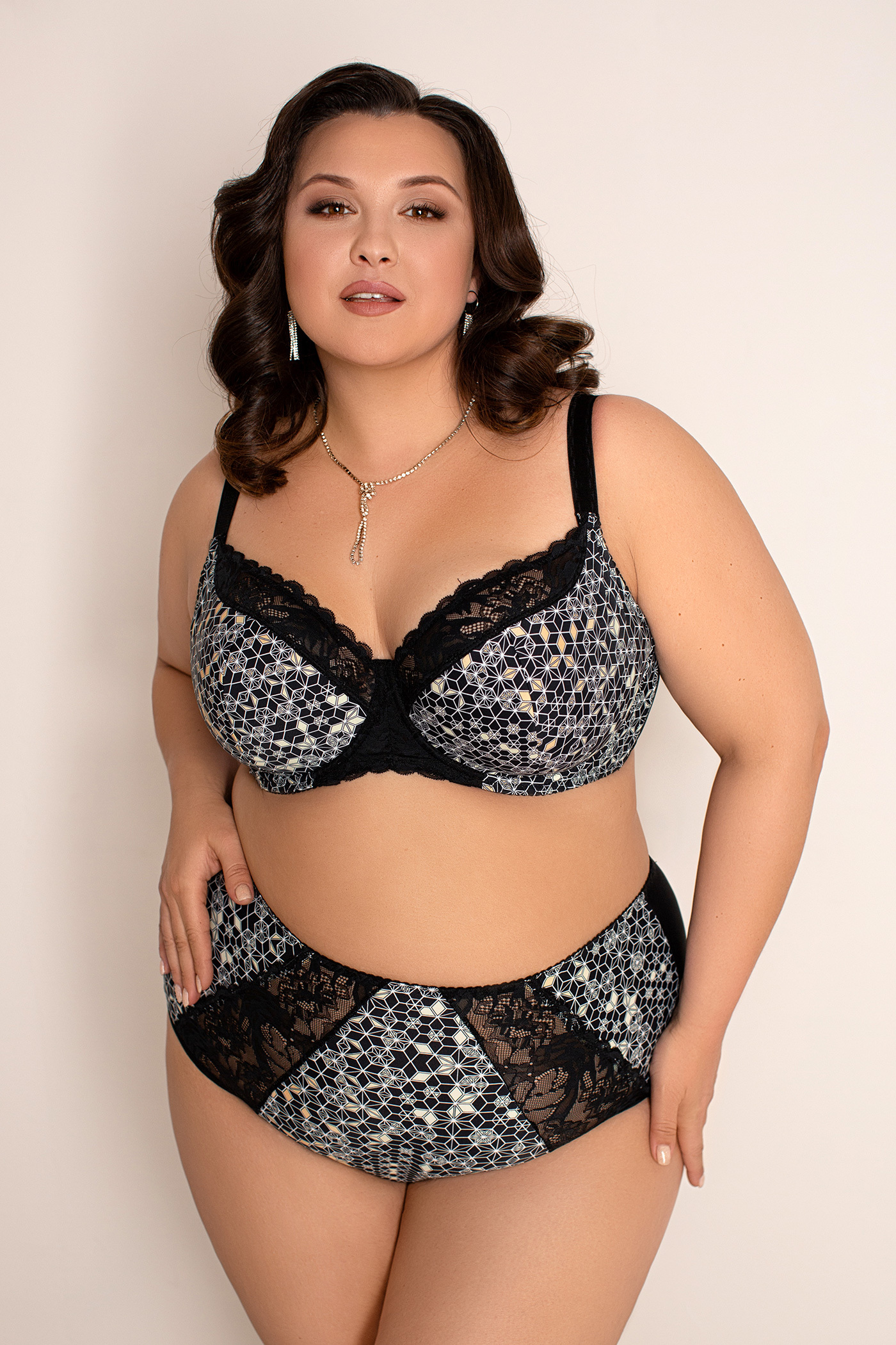 Бюстгальтер с комбинированной чашкой (полупоролон). Верх чашки выполнен из эластичного кружева с дополнительным нижним слоем из эластичной сетки, низ чашки продублирован поролоном. Материал сочетается с благородным кружевом. В модели предусмотрены подгрудные, а также боковые косточки. Модель Б 427 имеет улучшенную конструкцию, которая обеспечивает отличную посадку на фигуре и придает красивую форму груди. Застежка во всех размерах на широкие (57мм) крючки-петли. В размерах 75G, 80G-90G, 80H-90H, 95G боковая часть пояса бюстгальтера усилена слоем сетки.