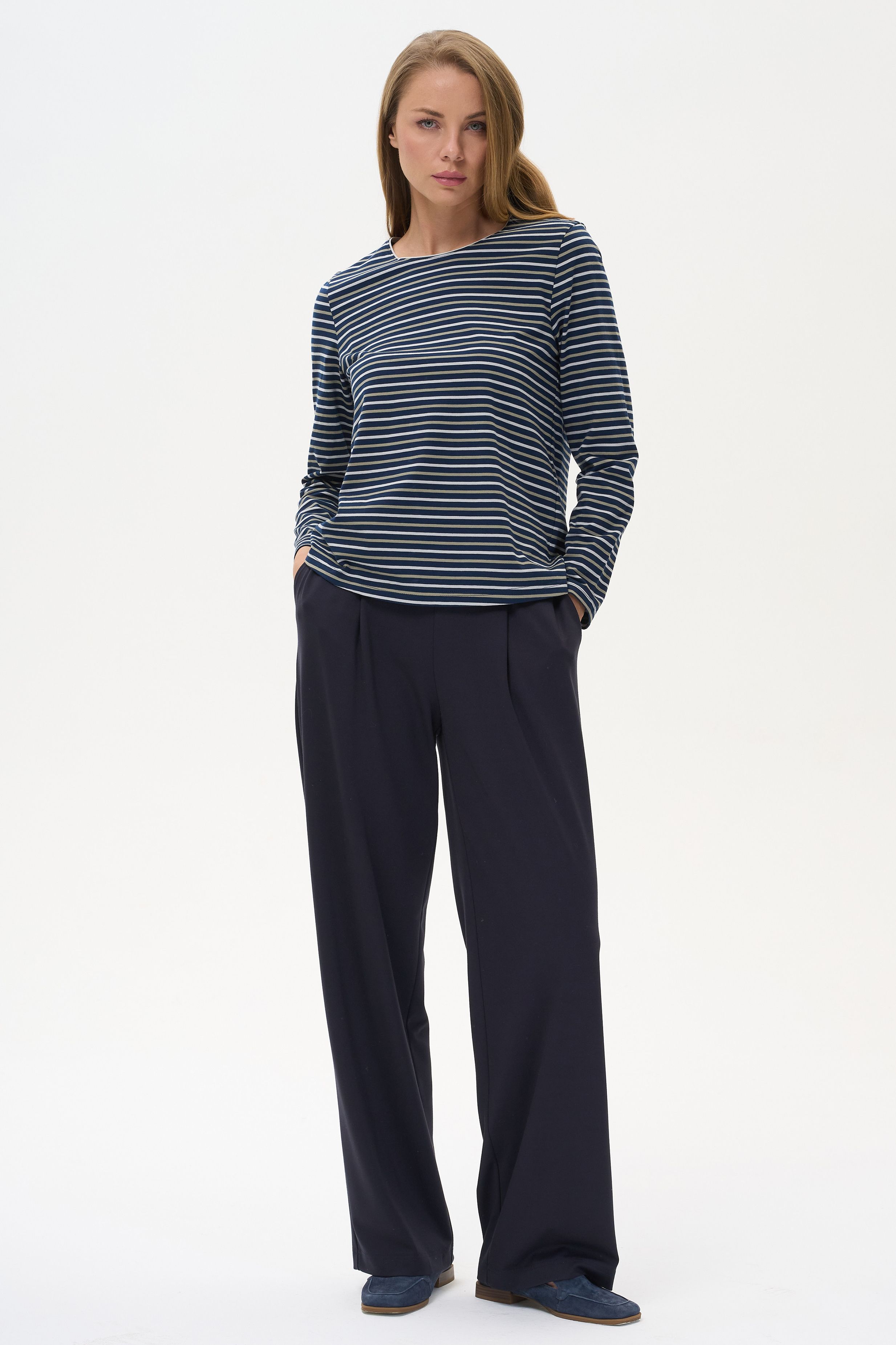 Описание: Повседневный джемпер из вязаного хлопкового полотна качества пенье. Модель с круглым вырезом горловины и длинными втачными рукавами. Рост модели 178 см.