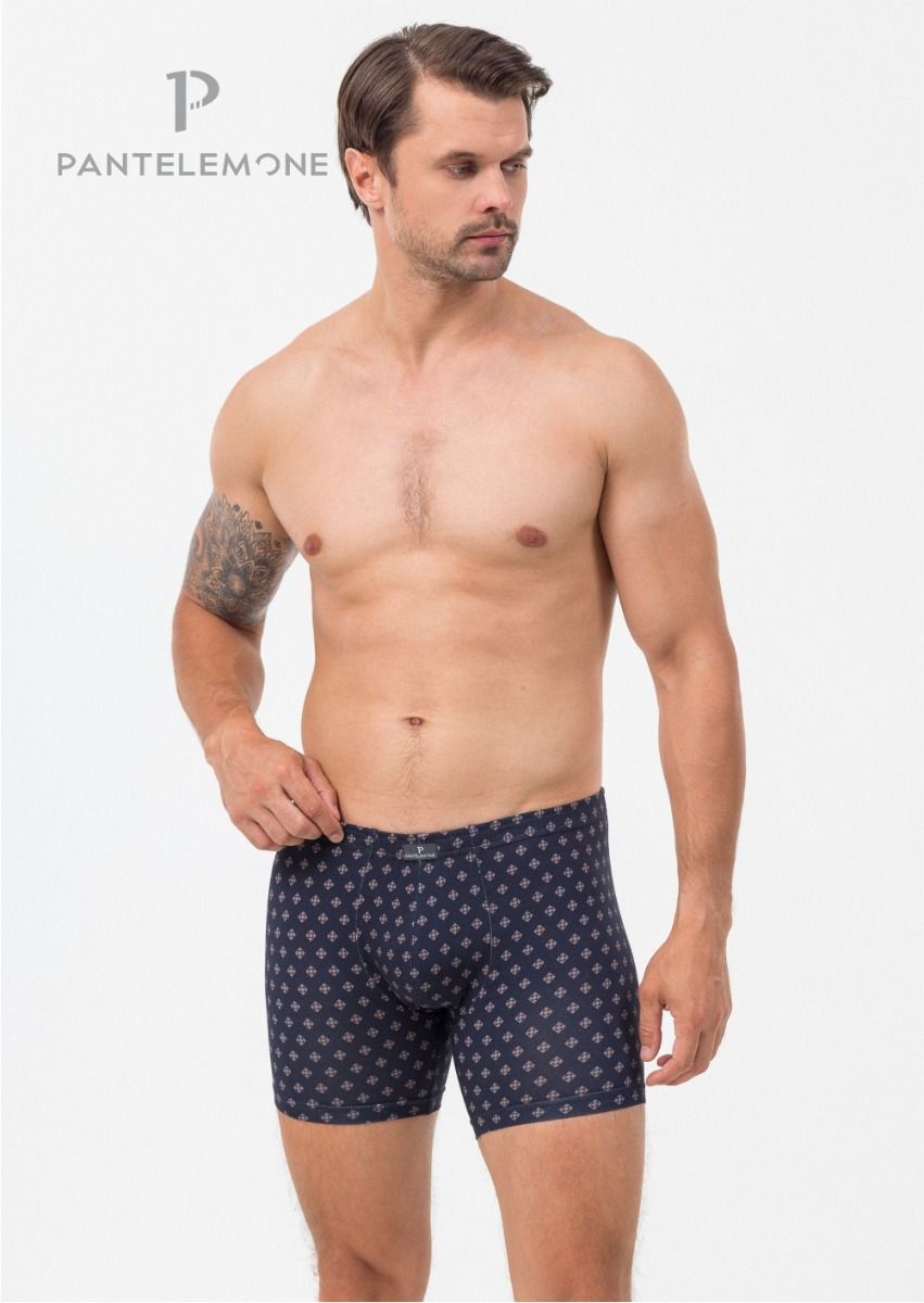 Мужские трусы шорты удлиненные облегающего силуэта, на удобной закрытой плоской резинке. Выполнены из набивного полотна.
