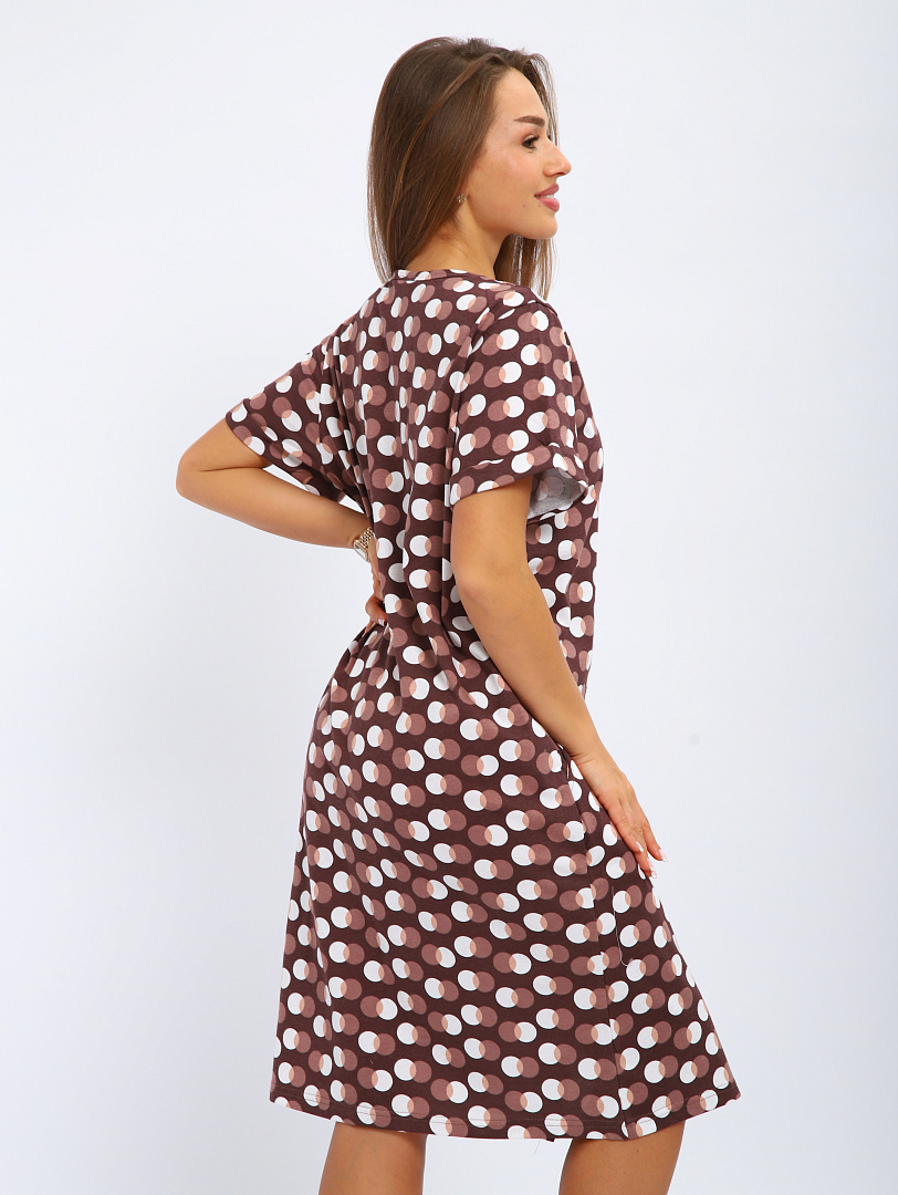 Халат женский выполнен из трикотажного полотна кулирка. халат свободного силуэта, втачной короткий рукав, горловина окантована, карманы в боковых швах, застежка на молнию.