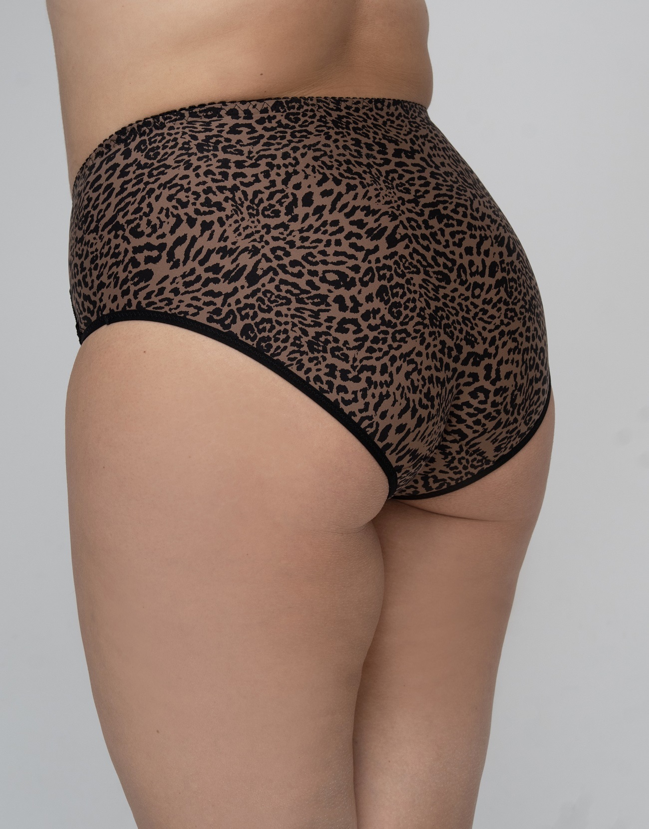 Трусы высокая посадка из принтованного полотна и эластичного кружева.