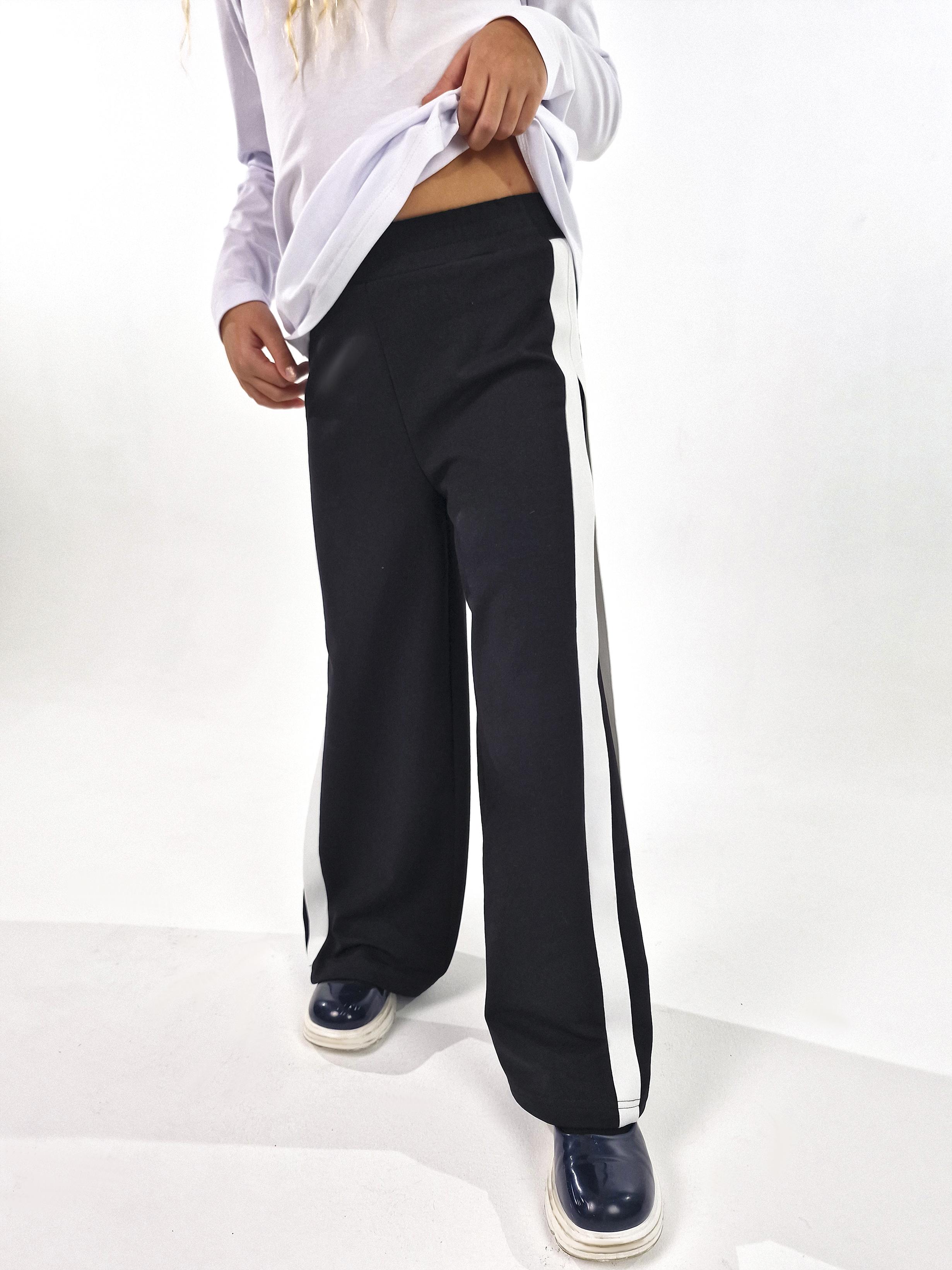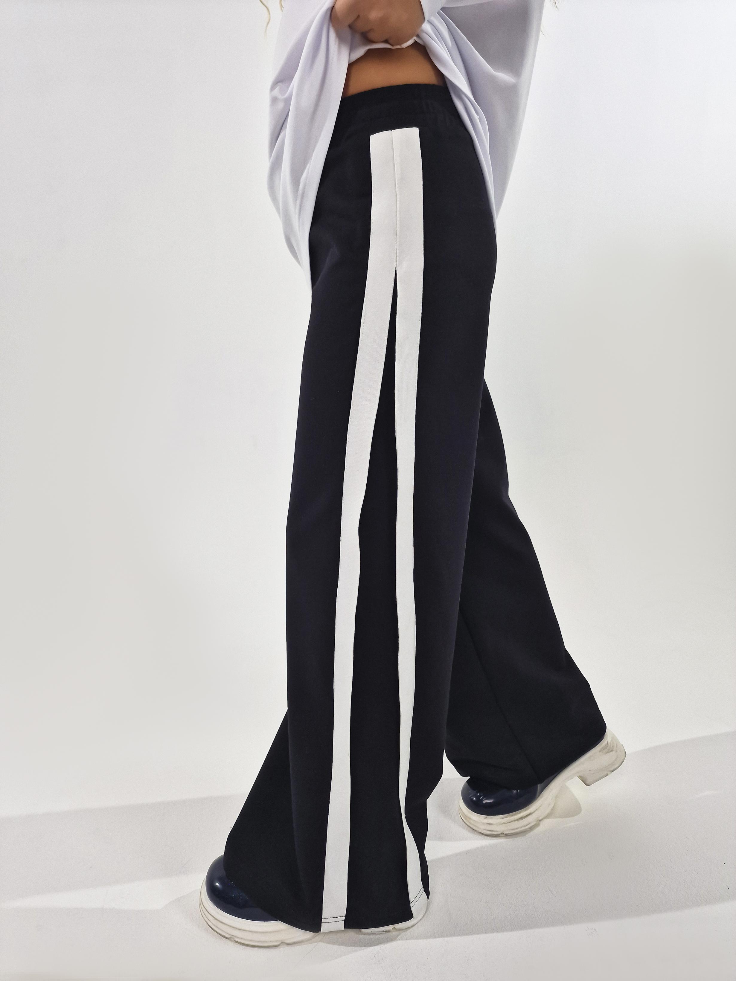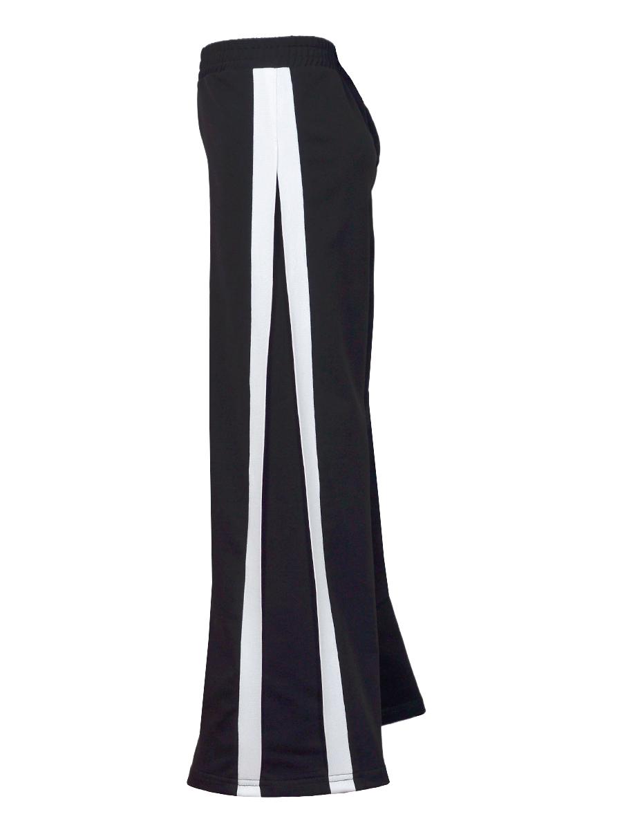 Брюки-длинные, клеш. Притачной пояс с резинкой. Лампасы по боковым швам.