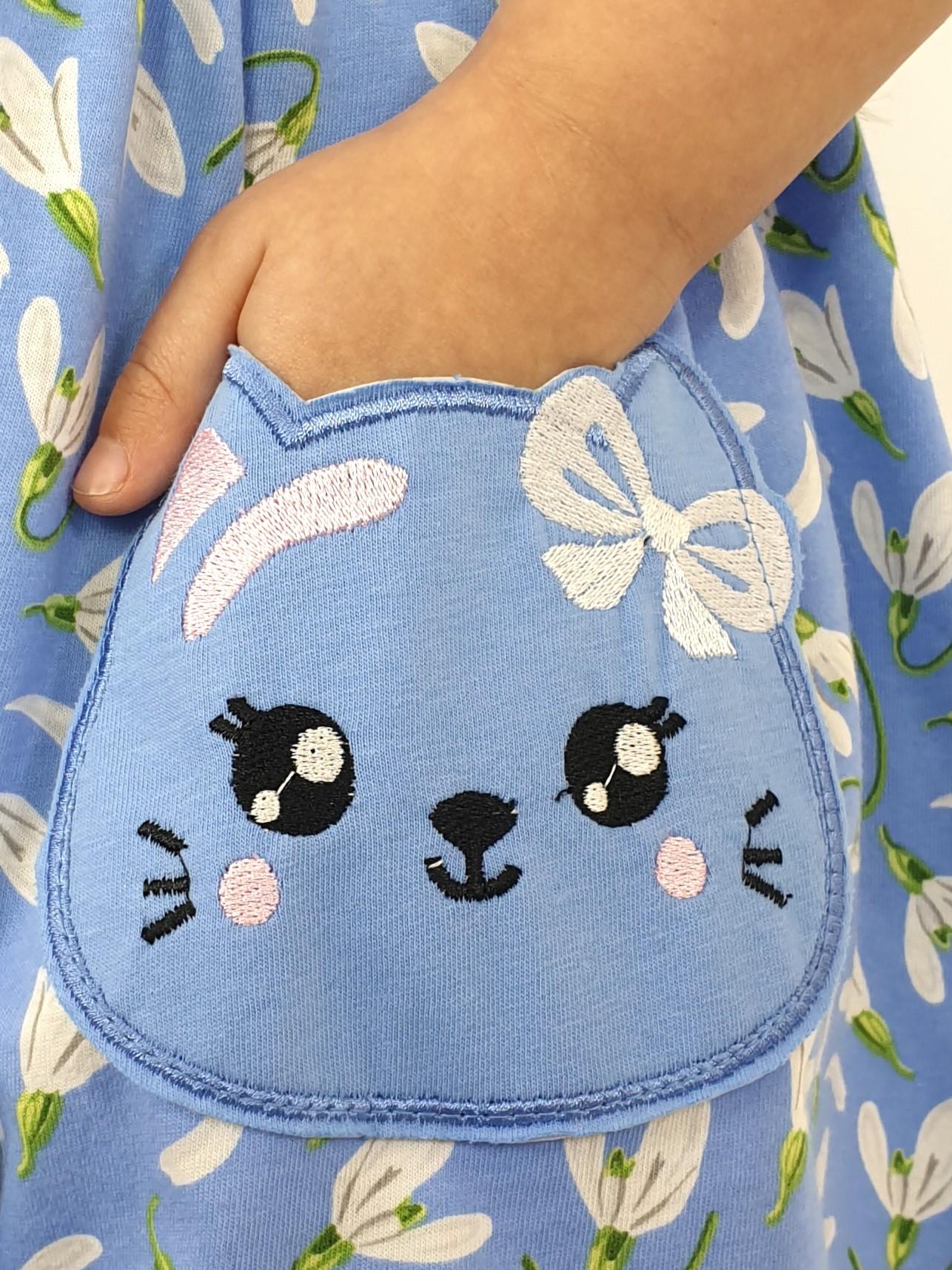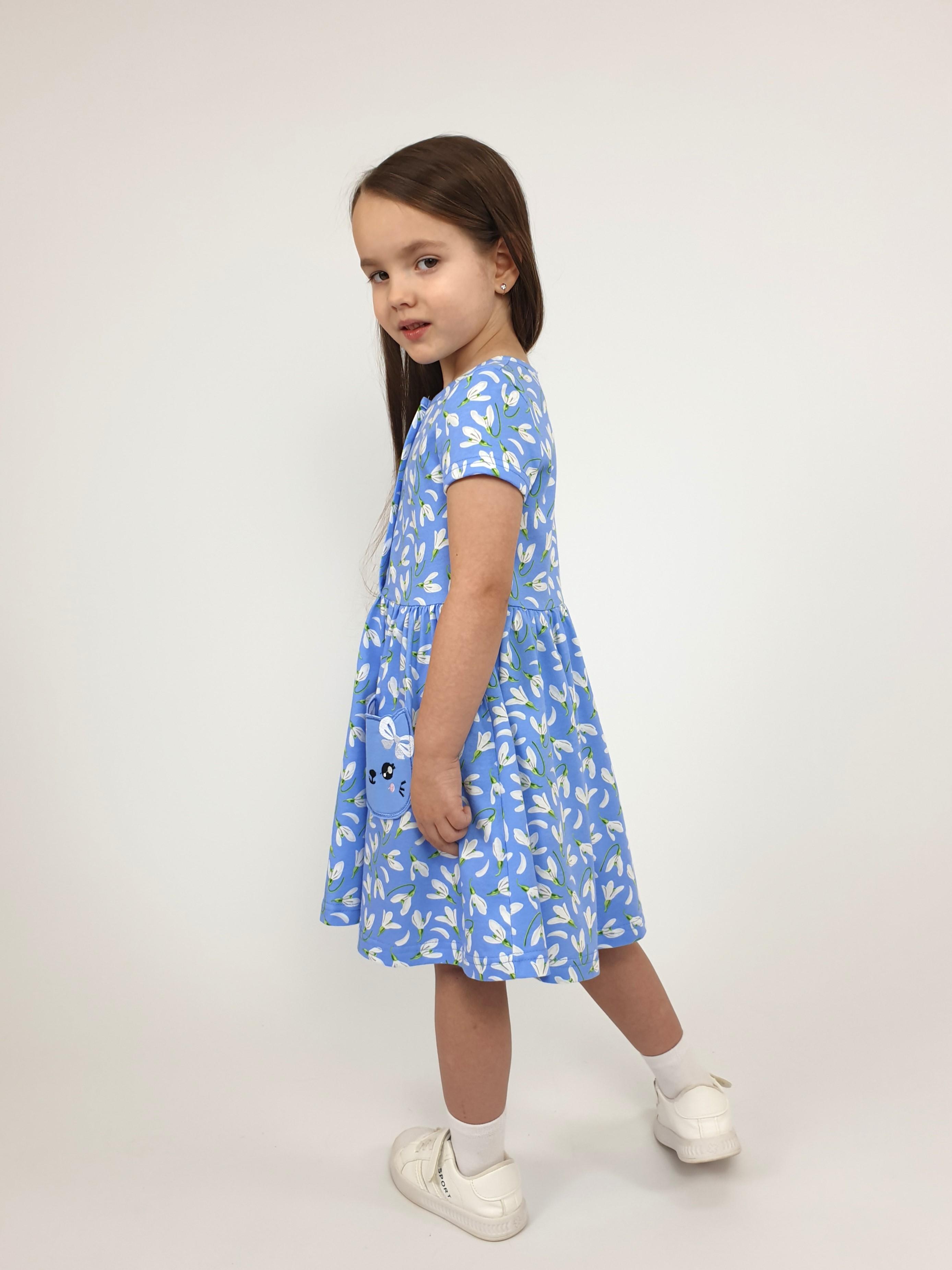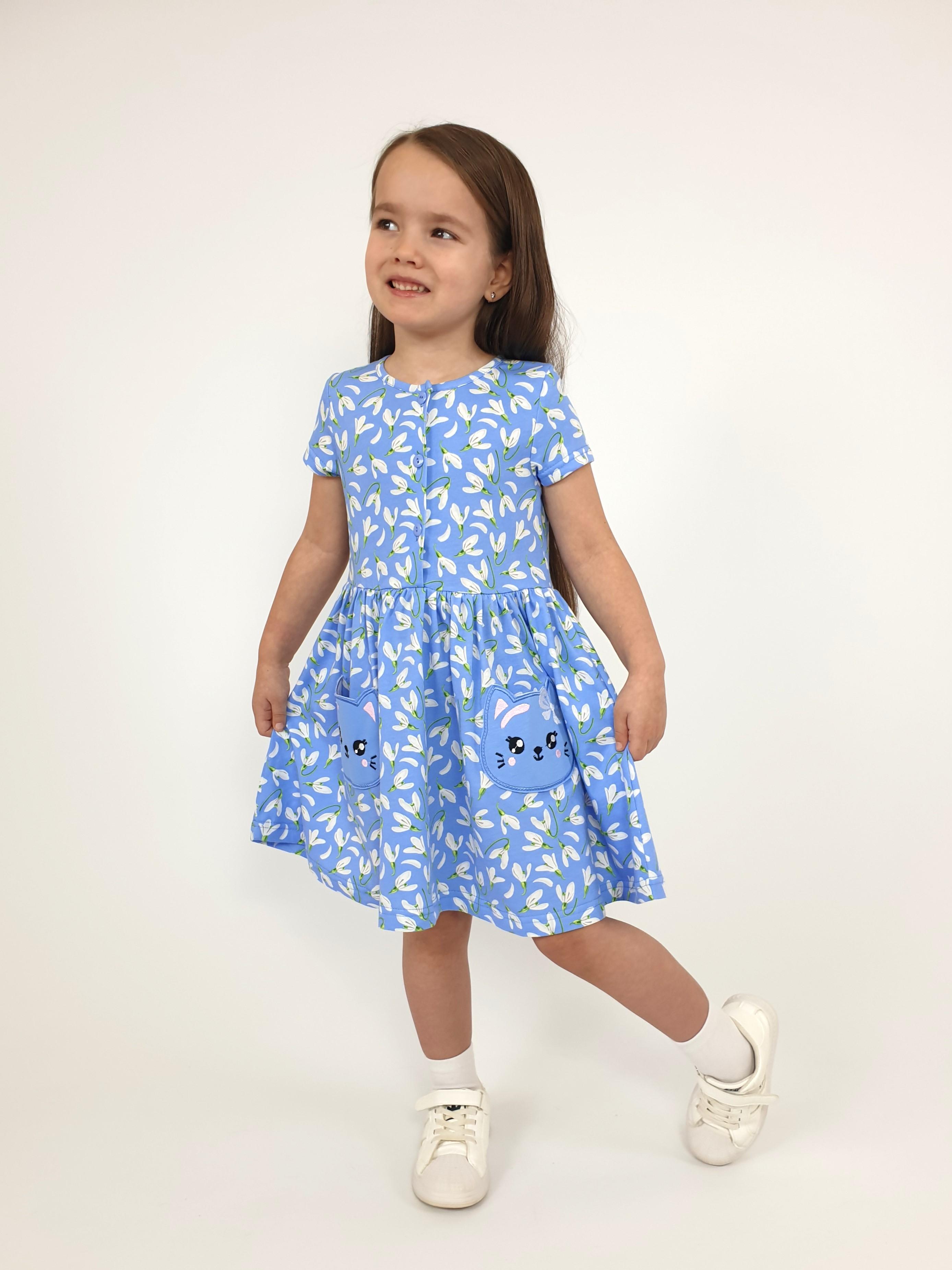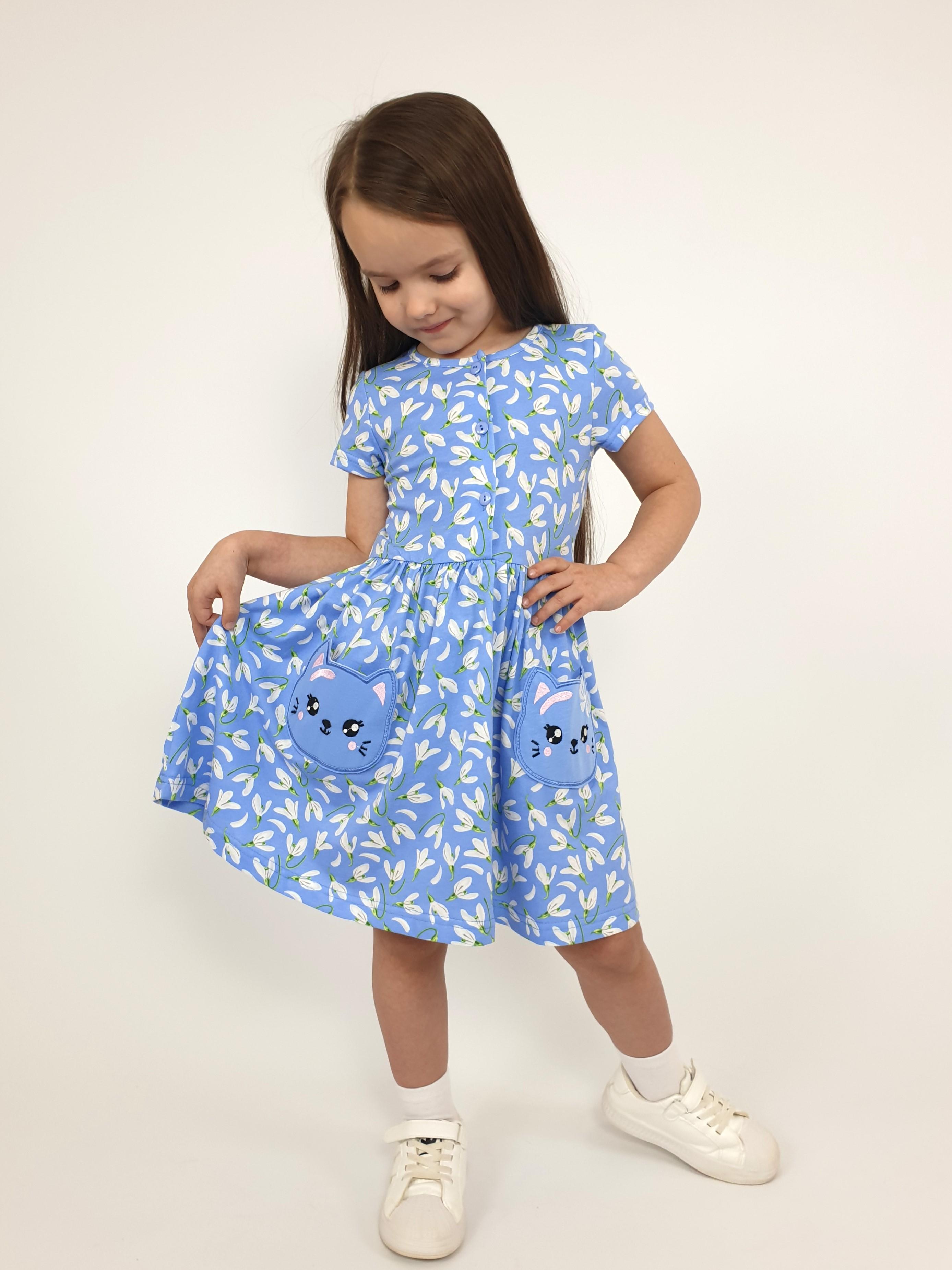 Летнее платье для девочки выполнено из качественного кулирного полотна. Модель – приталенного силуэта, декорирована оригинальными накладными карманами и удобной застежкой на пуговицы. Такое платье идеально подойдёт как на каждый день, так и при особых случаях. Материал легкий, приятный на ощупь, устойчивый к частым стиркам.