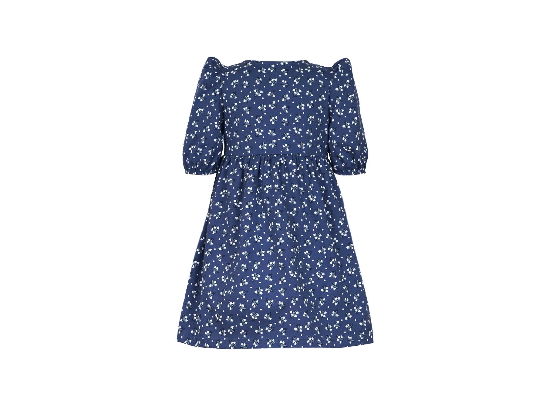 Платье-с отрезной юбкой в сборку. Короткий рукав с резинкой внизу, сборка по окату. Горловина окантована и подшита, застежка центральная на пуговицы.