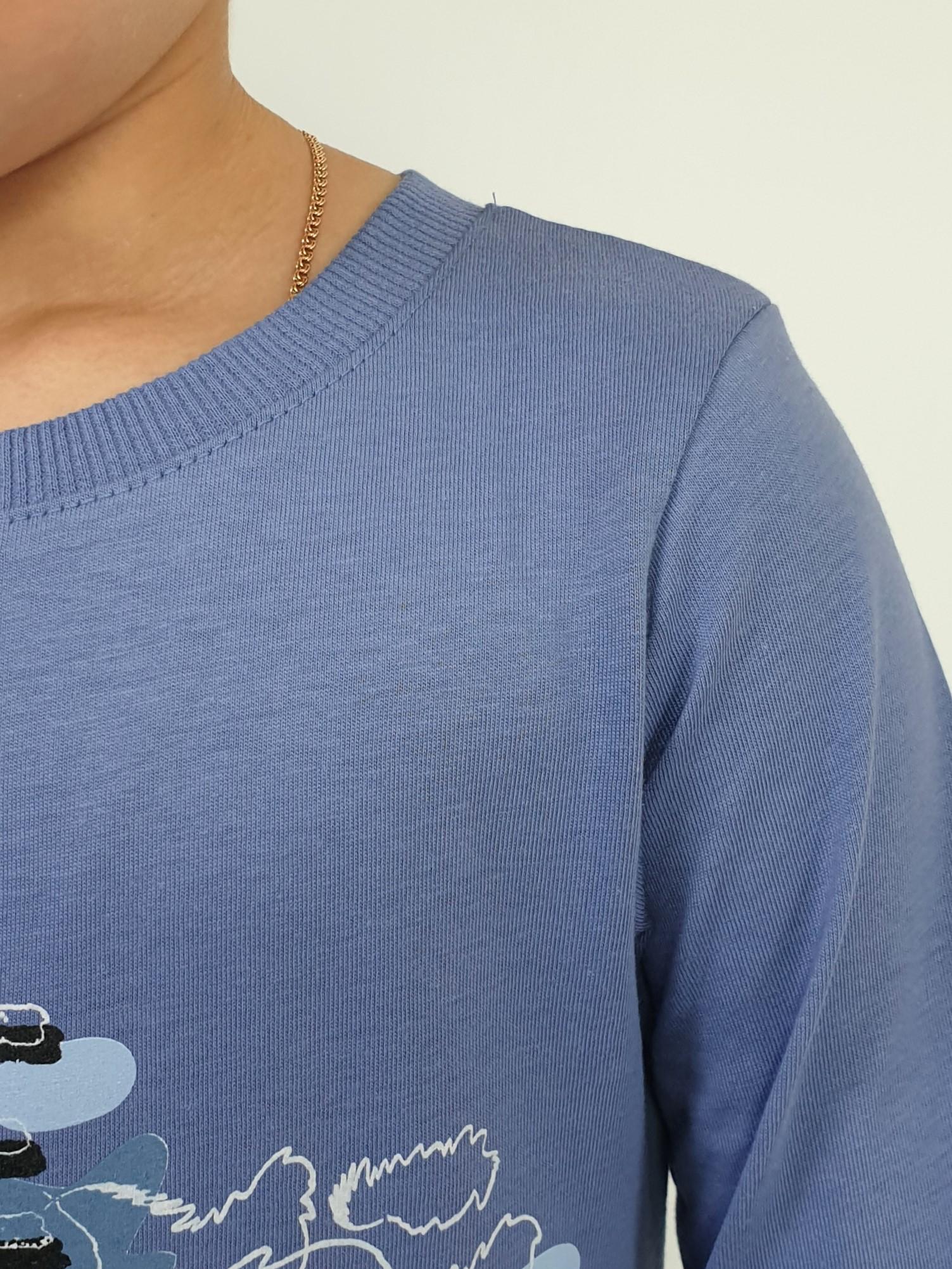 Фуфайка-прямой силуэт, длинный втачной рукав. Горловина обработана ластиком. Печать и вышивка на переде.