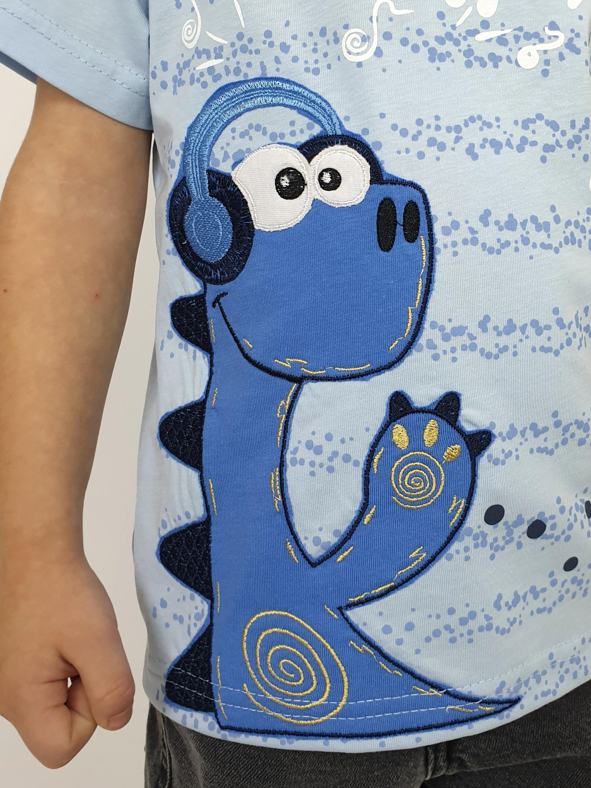 Фуфайка-прямой силуэт, короткий втачной рукав. Горловина обработана ластиком. Печать и вышивка на переде.