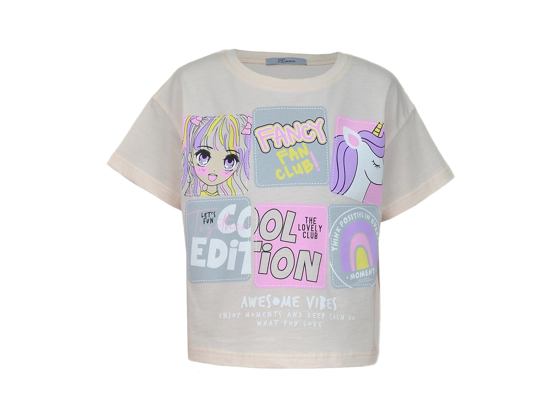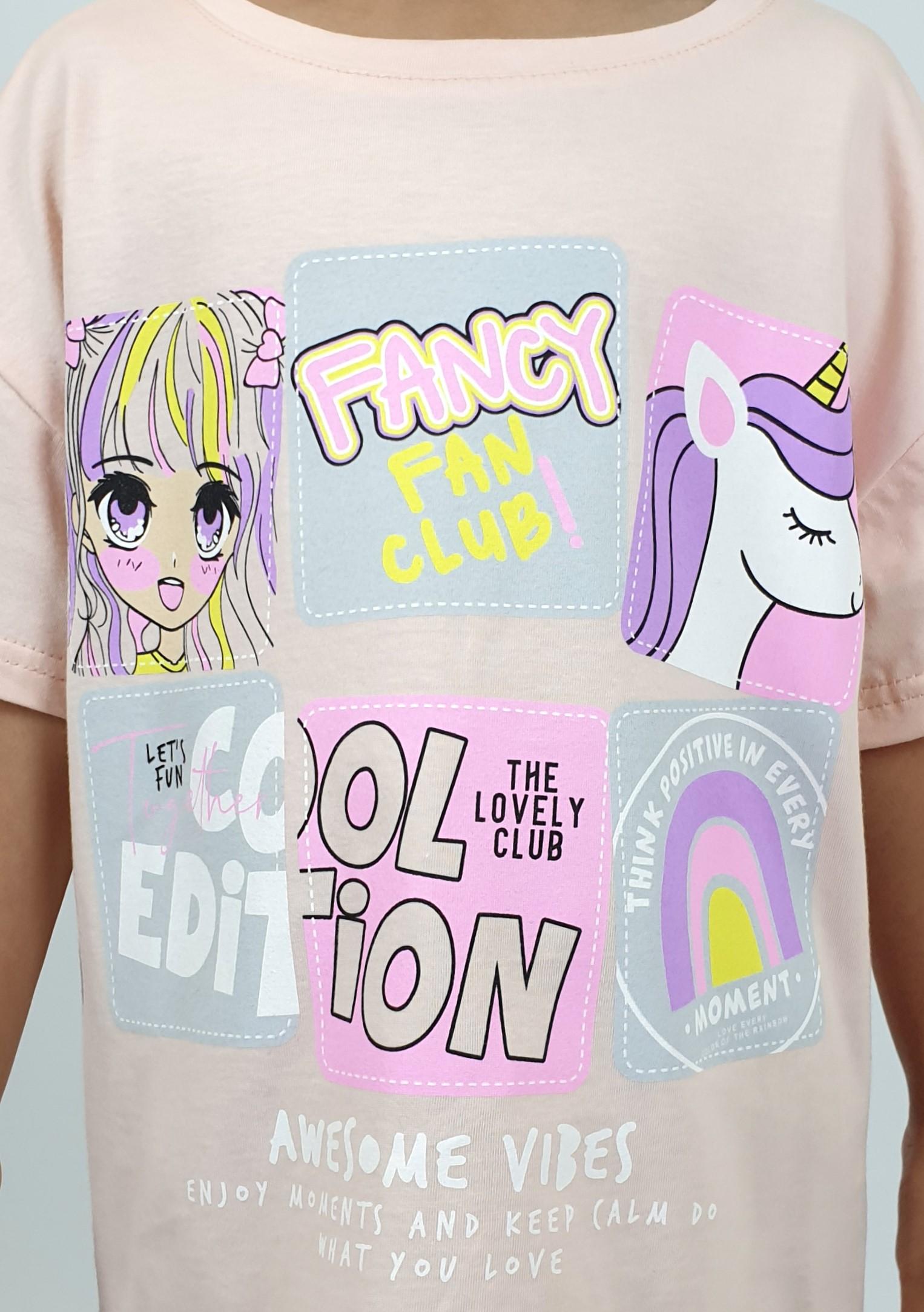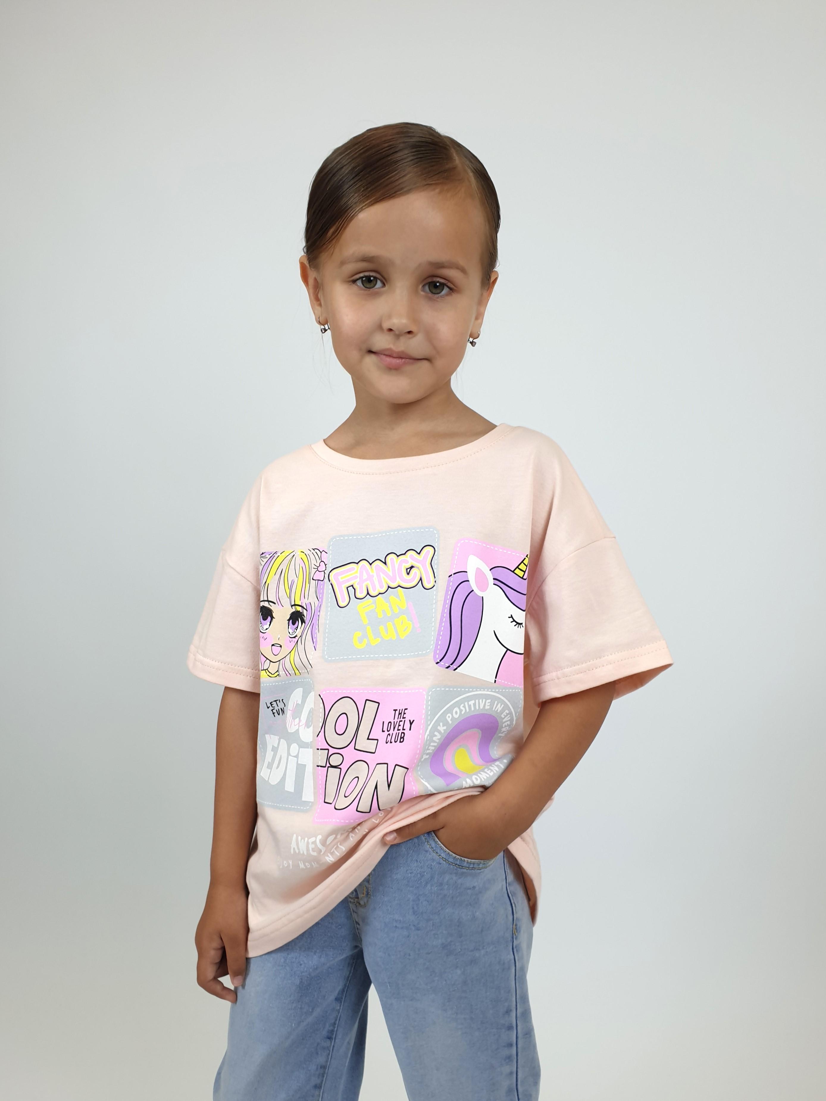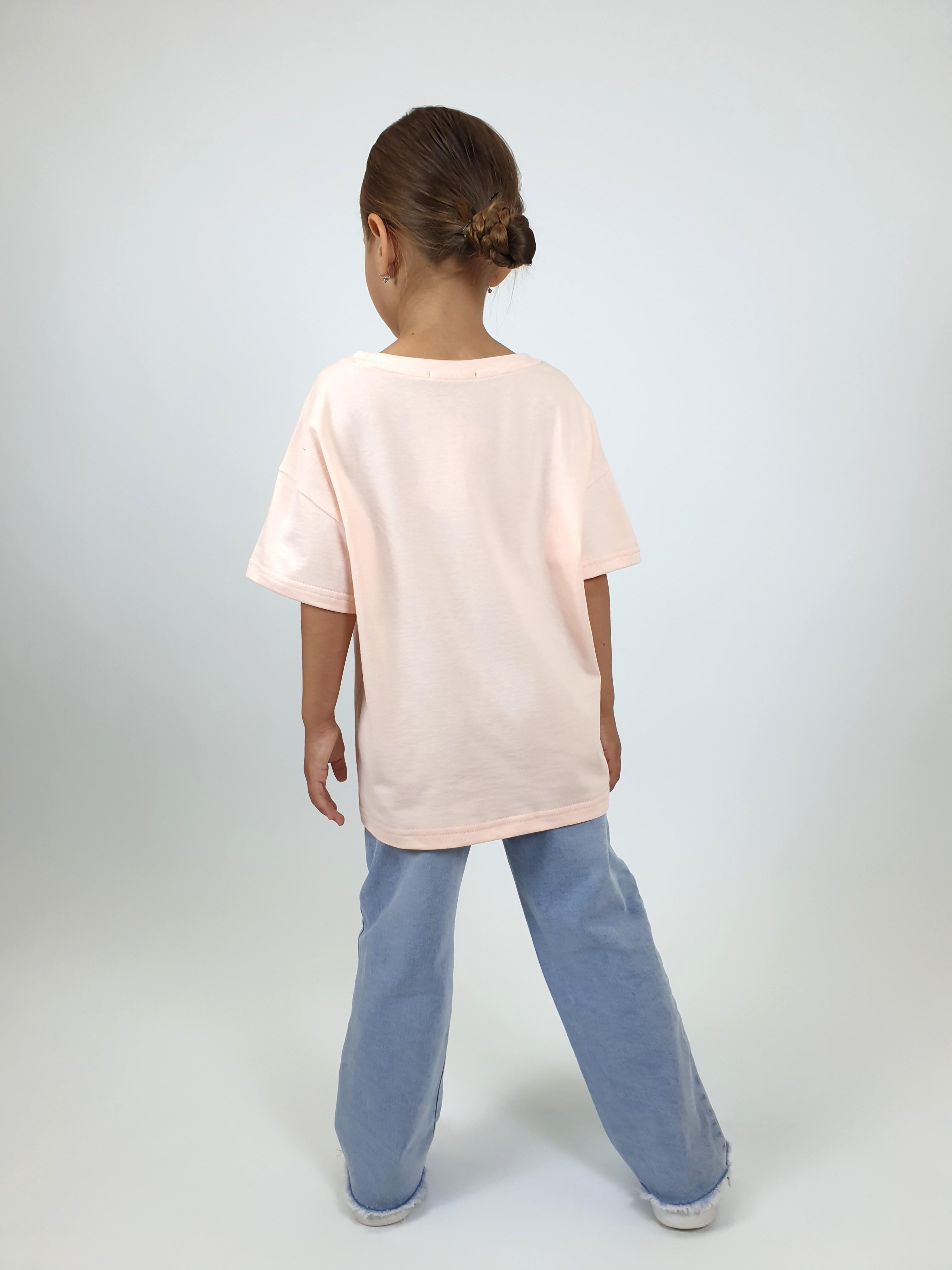 Фуфайка (оверсайз)-спущенное плечо, короткий рукав. Печать на переде, горловина окантована планкой.