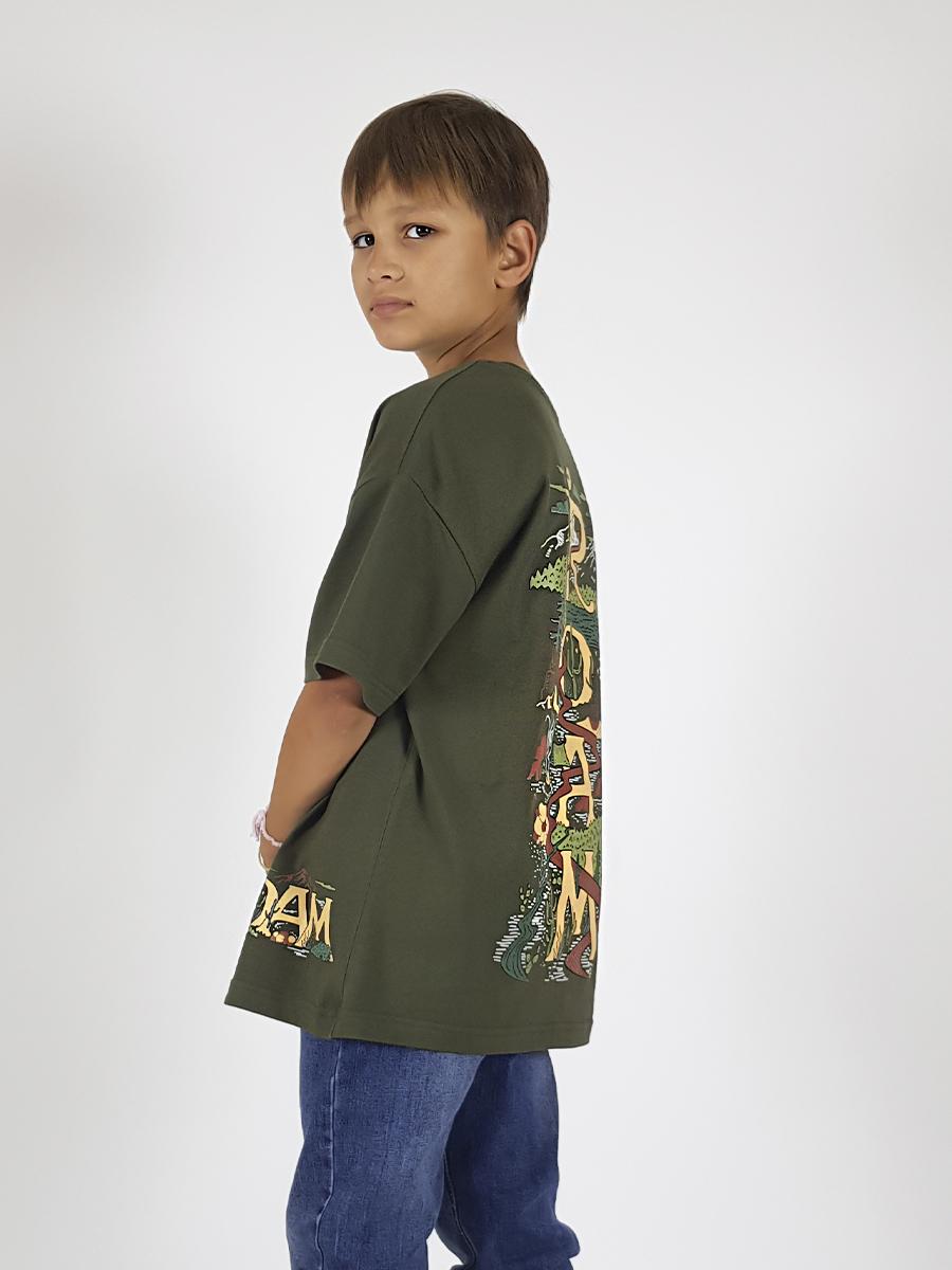Футболка (оверсайз)-прямой силуэт спущенное плечо, короткий рукав, перед и спинка с печатью. Горловина обработана планкой из ластика. Низ изделия и рукава подшиты.