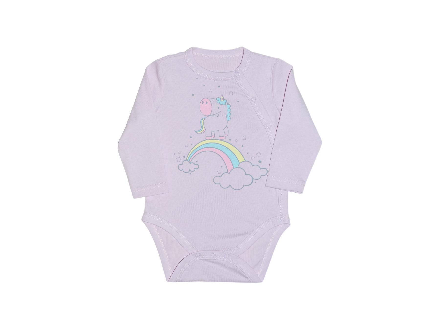 Полукомбинезон (боди)-застежка ассиметричная на переде слева (справа) и по низу изделия на кнопки. Рукав втачной, длинный. Печать по переду. Горловина, край борта и низ изделия-окантованы.